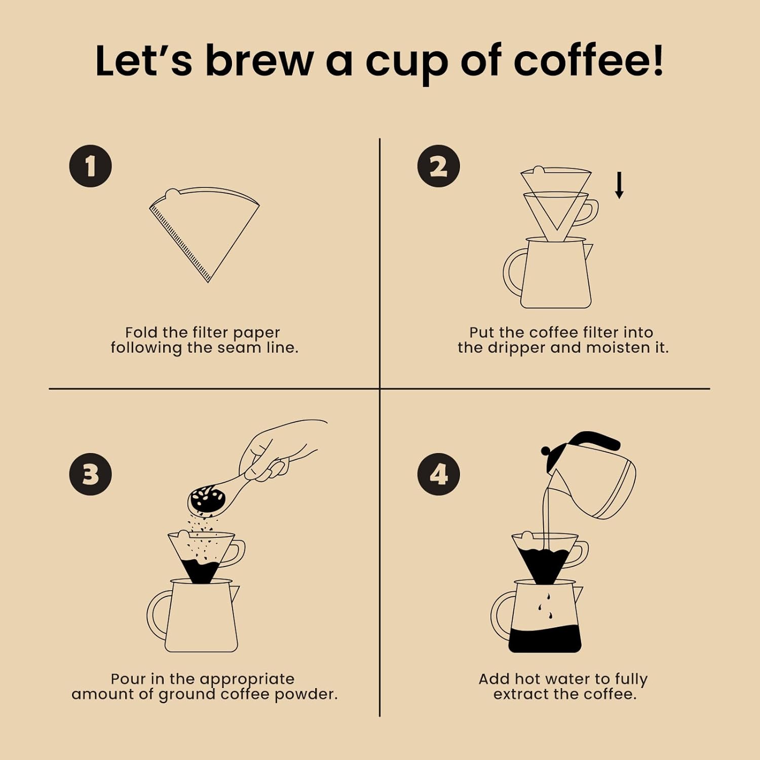 - EFFECTIVE FILTRATION: The cone coffee filter paper effectively filters out fine coffee grounds during the extraction process, resulting in a cleaner and smoother taste by removing bitterness and impurities.