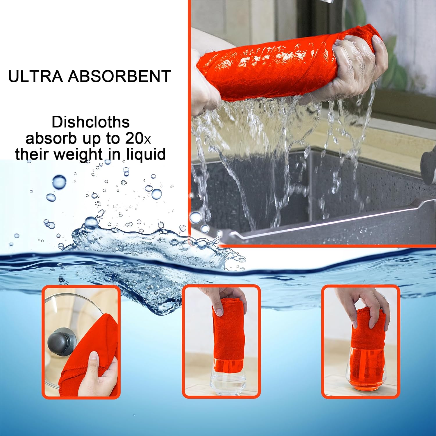 - HIGH QUALITY MATERIAL - Our dish rags are made of high quality non-abrasive and extra soft coral velvet thickening material, which is not easy to lint and fade, soft and not hurting hands, natural and without any chemicals. These dish cloths are not only suitable for kitchen cleaning, but also suitable for cleaning home furniture, car, window, electric appliance etc. It’s so easy to remove dust, dirt, stain, grease, fingerprints.
