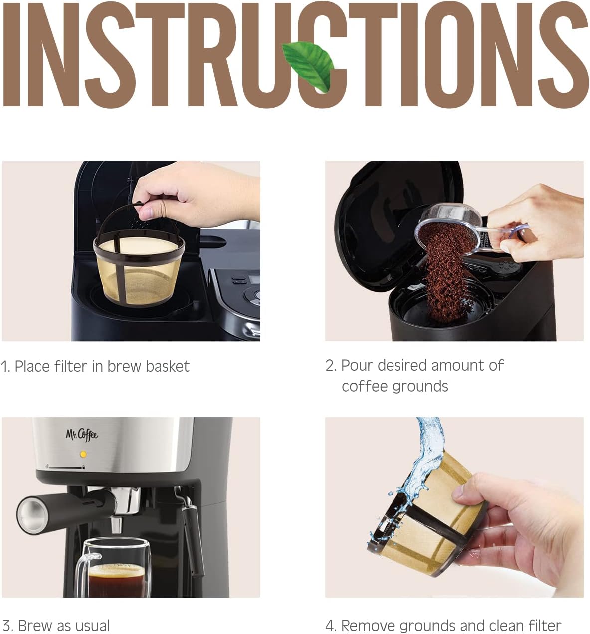 8-12 Cup Reusable Filter Basket With Closed Bottom Fits MrCoffee Coffee Maker and Brewer - Permanent Filter Replacement for Mr Coffee Gold Basket-Style Filters 1-Pack