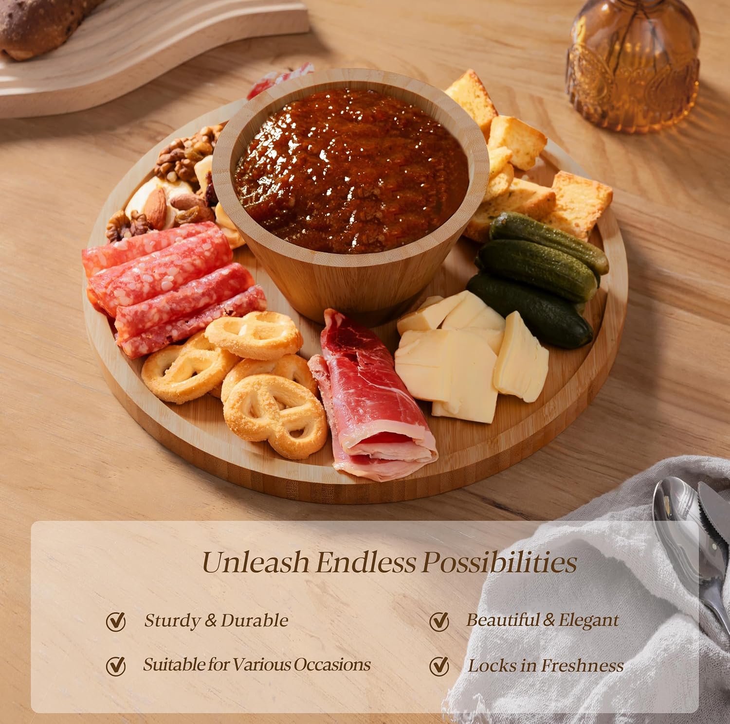 - Multifunctional: This multifunctional serving stand appears to be a convenient and adaptable addition to your kitchen or dining setup, suitable for a wide range of culinary needs and occasions. The dip bowl functionality is versatile and suitable for serving a variety of dips, such as creamy spinach dip, cheese, and crackers, or small foods like berries and seeds