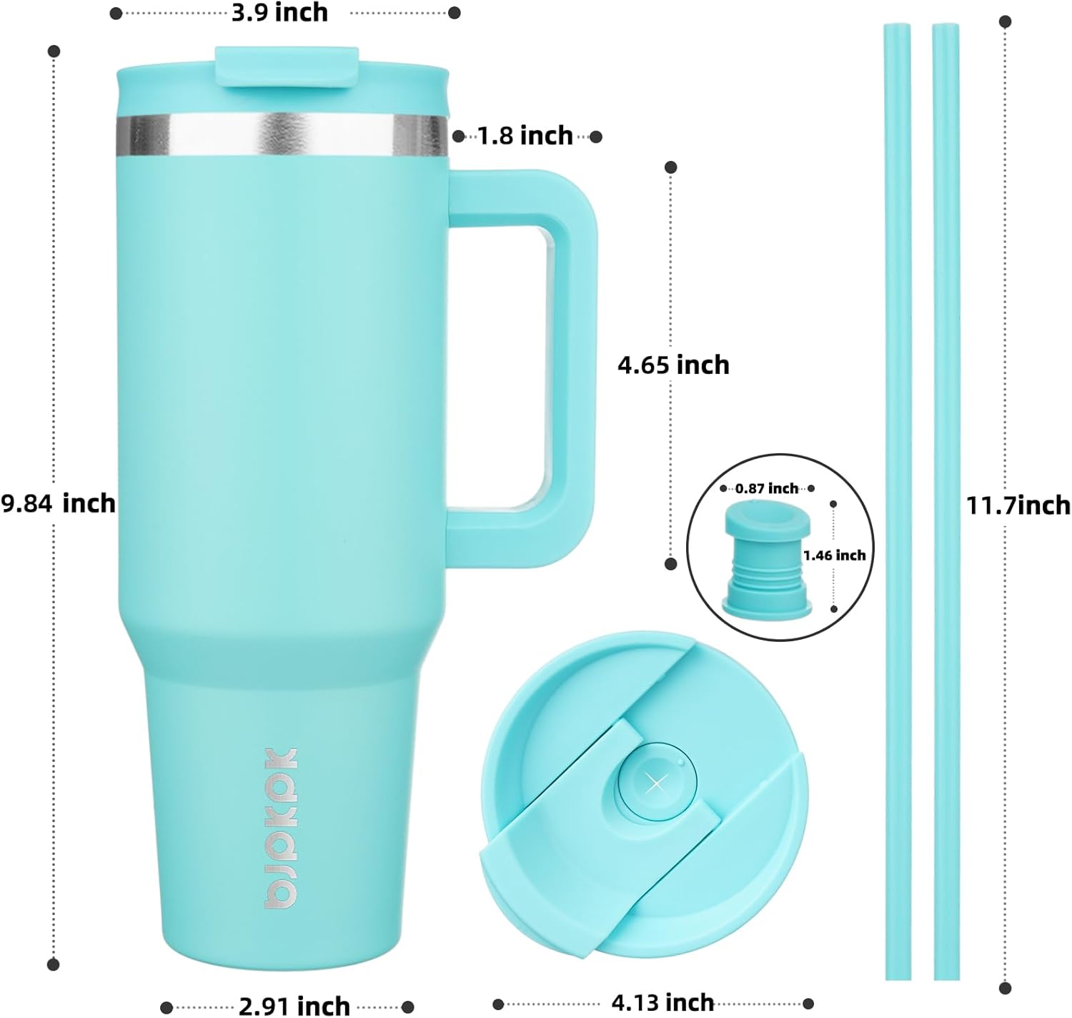 BJPKPK 40 oz Stainless Steel Tumbler With Handle Insulated Tumblers With 2 Straw Travel Coffee Mug With Lid,Turquoise