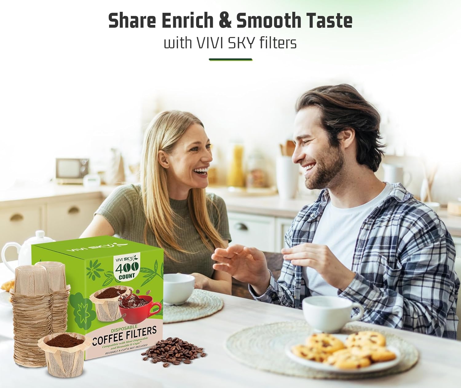 VIVI SKY Disposable K Cup Coffee Filters,400 Count Coffee Filter Paper Filters for Keurg Brewers Single Serve 1.0 and 2.0, Use with Reusable K Cup Coffee Pods (400, Unbleached)