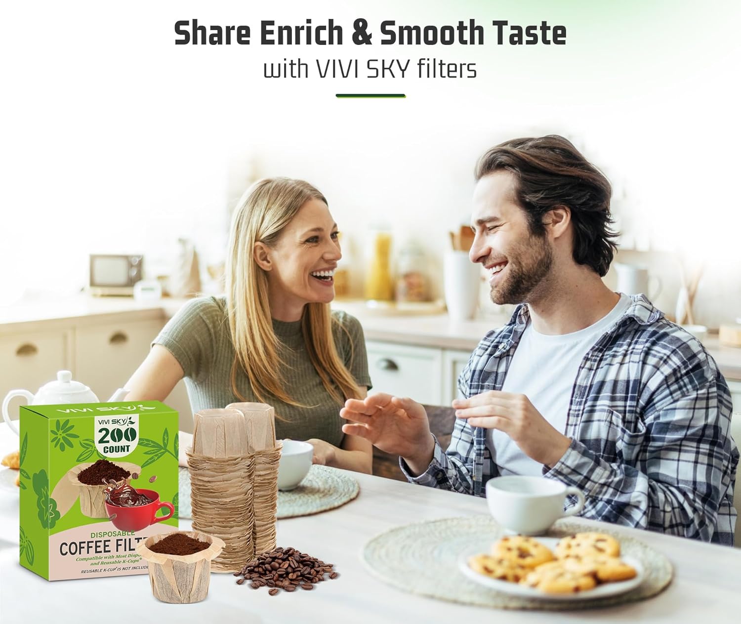VIVI SKY Disposable K Cup Coffee Filters,200 Count Coffee Filter Paper Filters for Keurg Brewers Single Serve 1.0 and 2.0, Use with Reusable K Cup Coffee Pods (200, Unbleached)