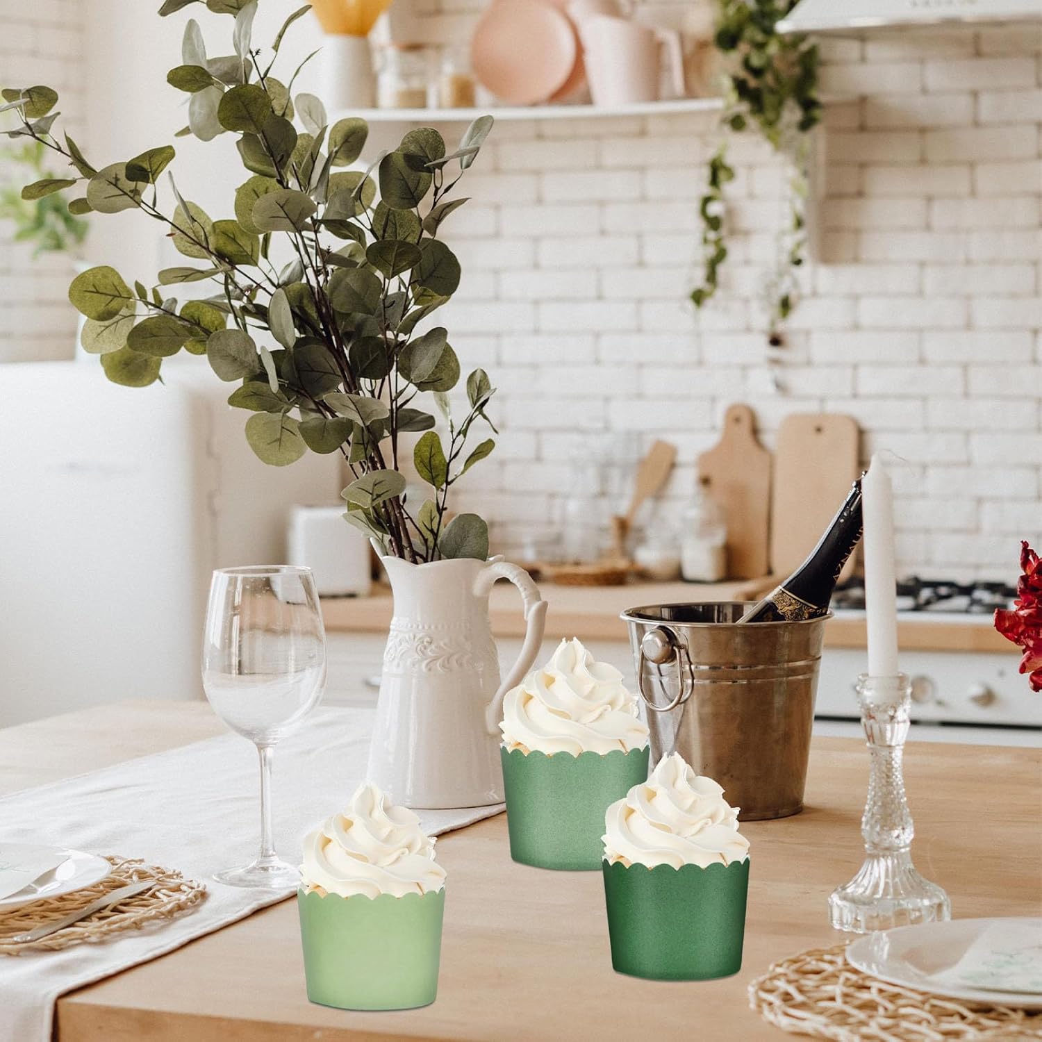 - Sage Green Theme - Our paper baking cups have sage green theme colors, 3 gradient green colors, from light to dark, fresh and delicate, add a exquisite touch to your tabletop or party.