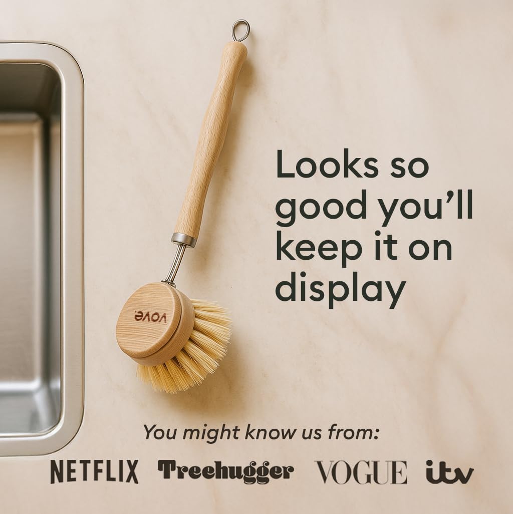 - Included Components : Vove Premium Bamboo Dish Brush with 2 Replacement Heads, 6 Natural Kitchen Sponges