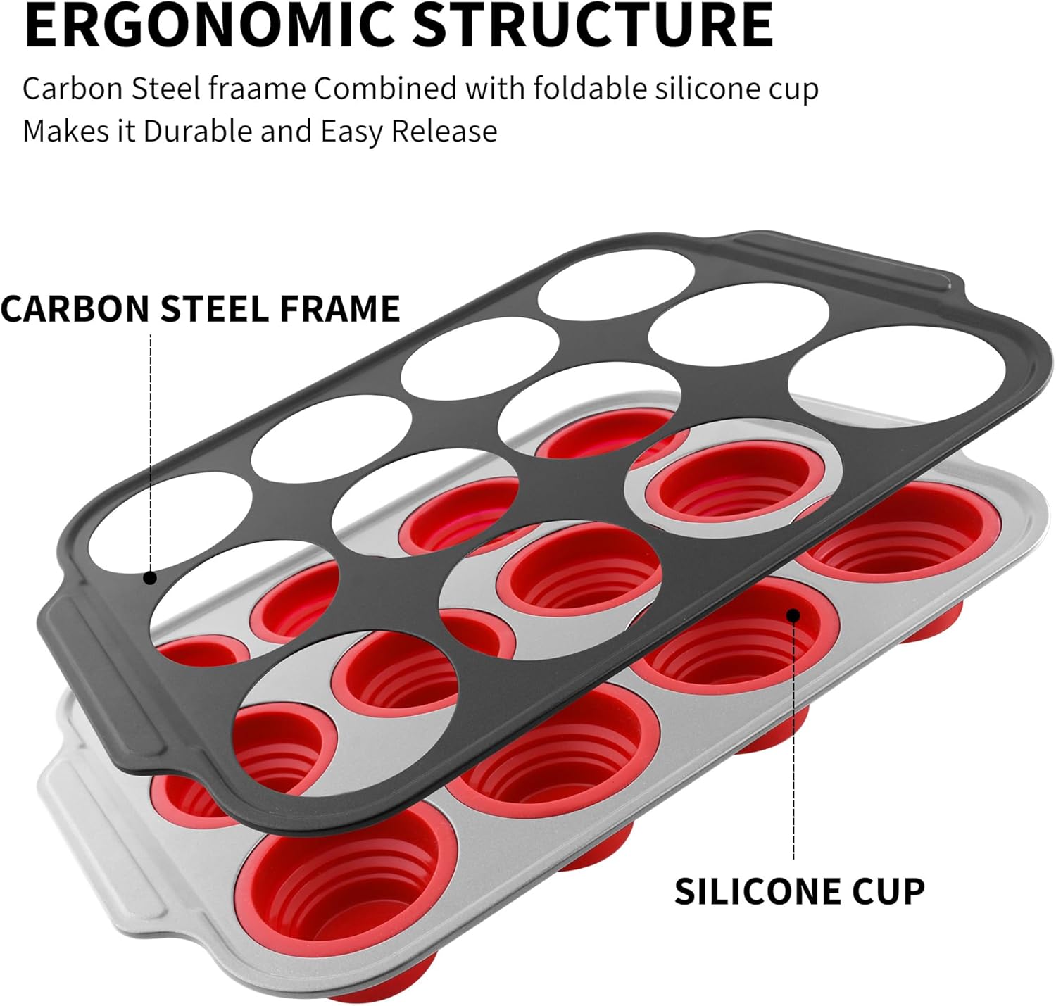 Silicone Muffin Pans for Baking with Metal Reinforced Frame, Nonstick Cupcake pans 12 regular size, Muffin Tin Easy to Pop, Silicone Egg Bite Molds for Oven Dishwasher Safe