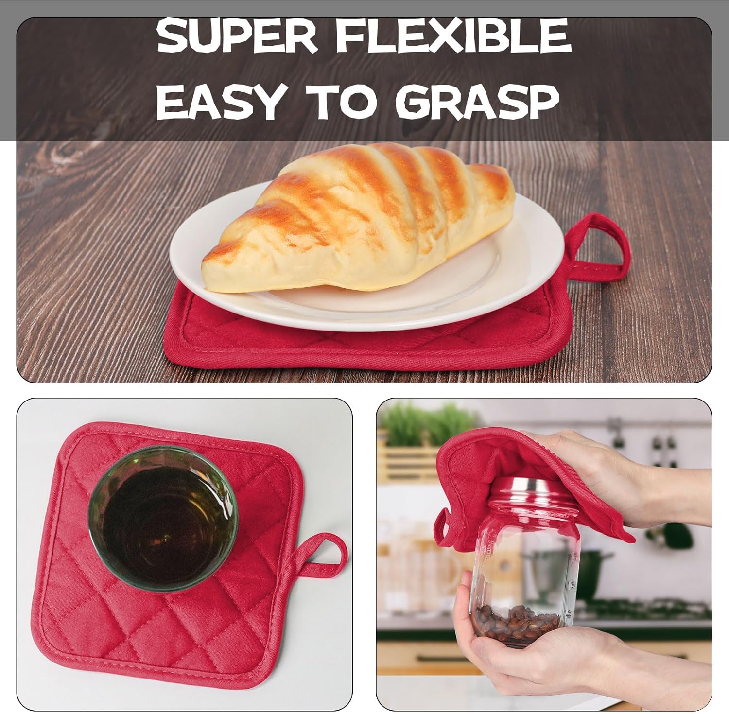 - 4 PIECE GREAT VALUE HOUSEHOLD ESSENTIALS PACK: Super value for 4pcs short oven mitts and pot holders, including 2 oven mitts(6.8 x 5.3in) and 2 pot holders (6.6 x 6.6in), perfect for daily use and coordinate well with your house and kitchen.