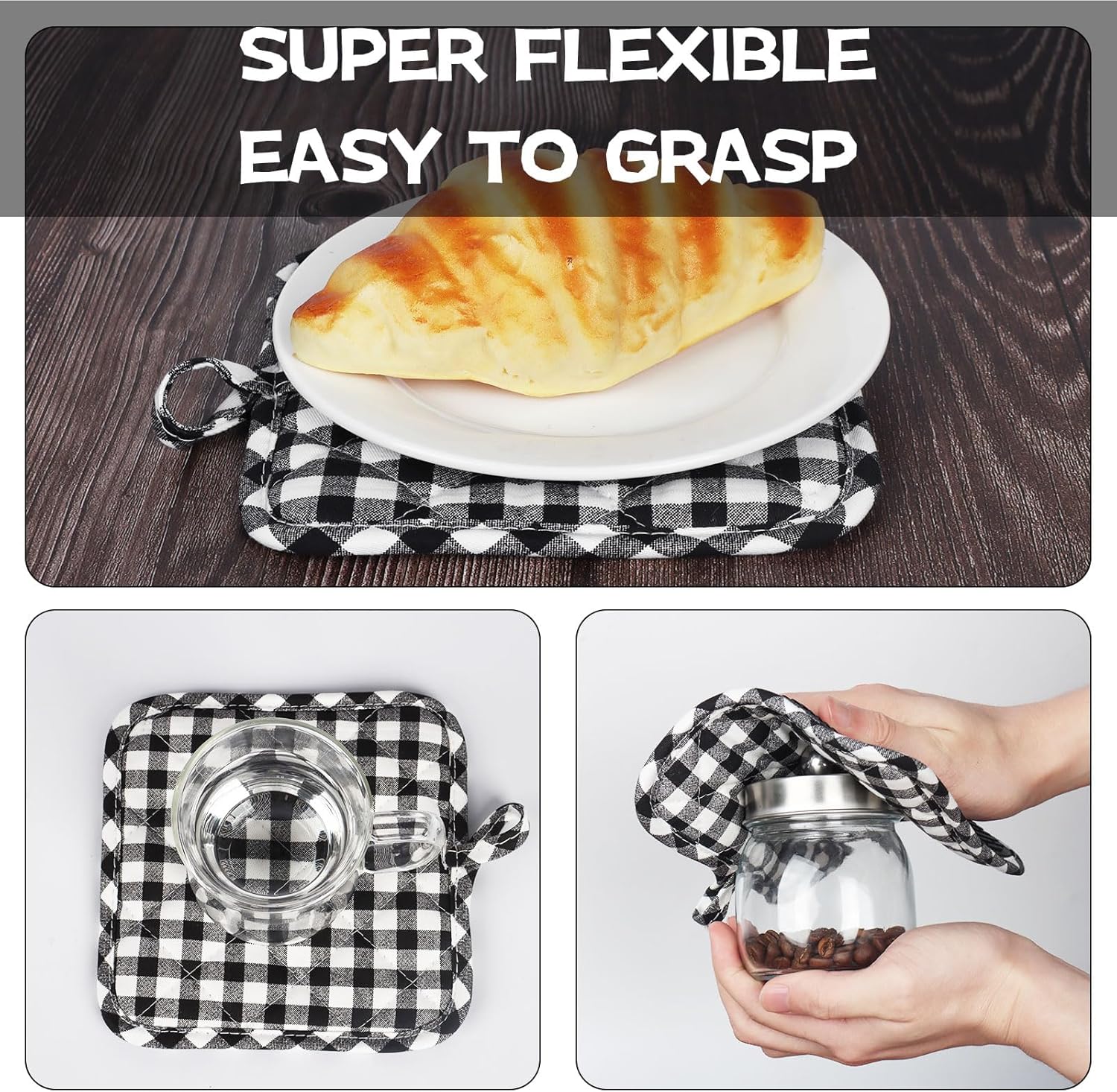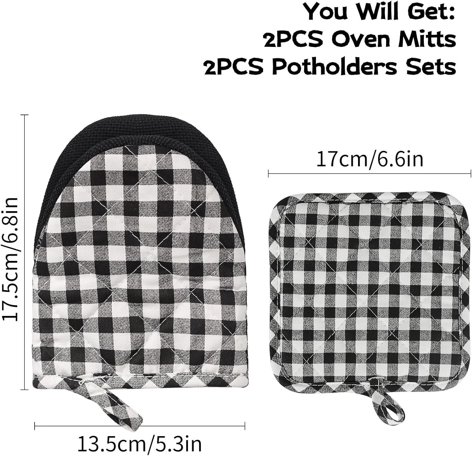 - 4 PIECE GREAT VALUE HOUSEHOLD ESSENTIALS PACK: Super value for 4pcs short oven mitts and pot holders, including 2 oven mitts(6.8 x 5.3in) and 2 pot holders (6.6 x 6.6in), perfect for daily use and coordinate well with your house and kitchen.
