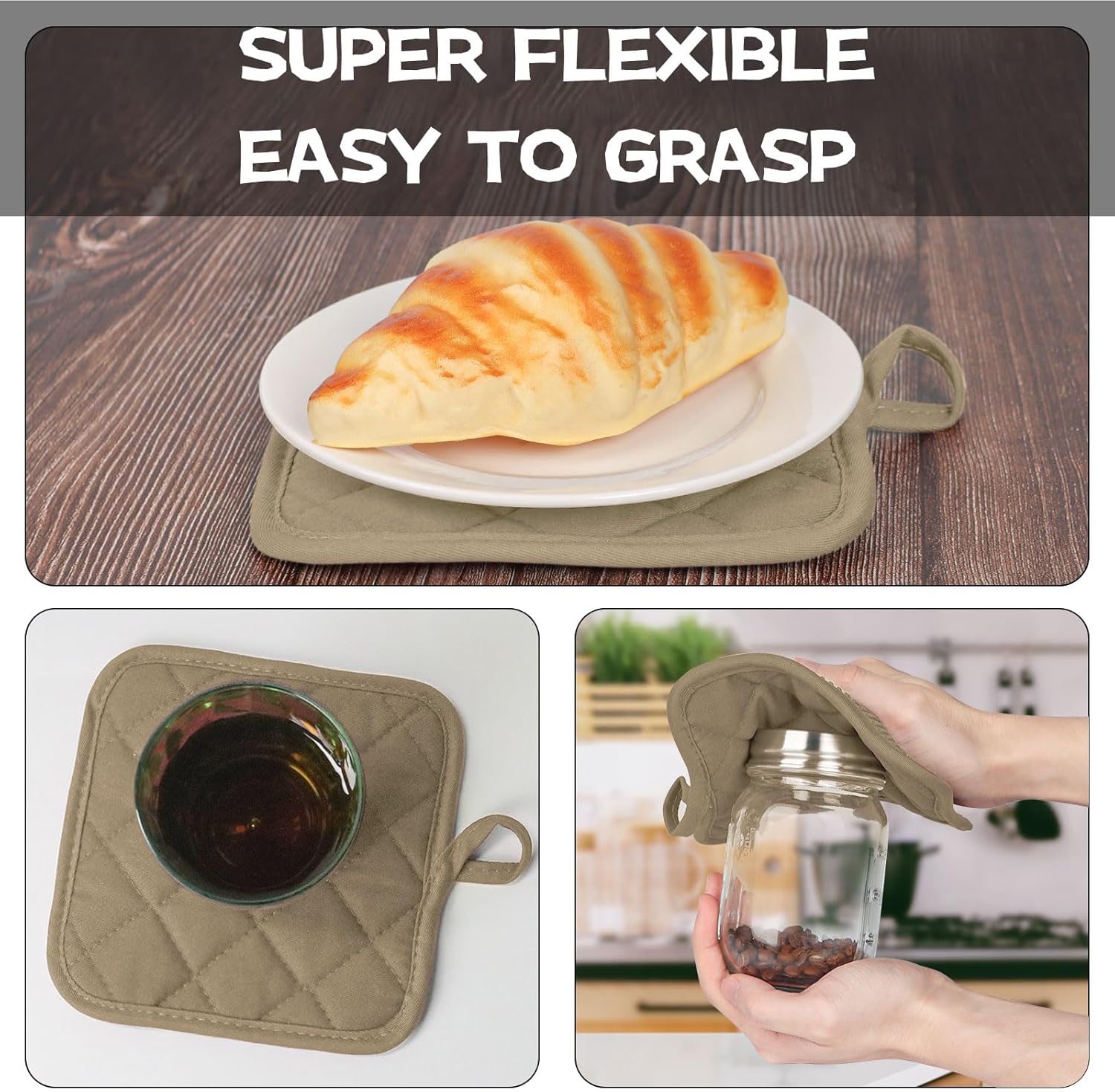 - 4 PIECE GREAT VALUE HOUSEHOLD ESSENTIALS PACK: Super value for 4pcs short oven mitts and pot holders, including 2 oven mitts(6.8 x 5.3in) and 2 pot holders (6.6 x 6.6in), perfect for daily use and coordinate well with your house and kitchen.