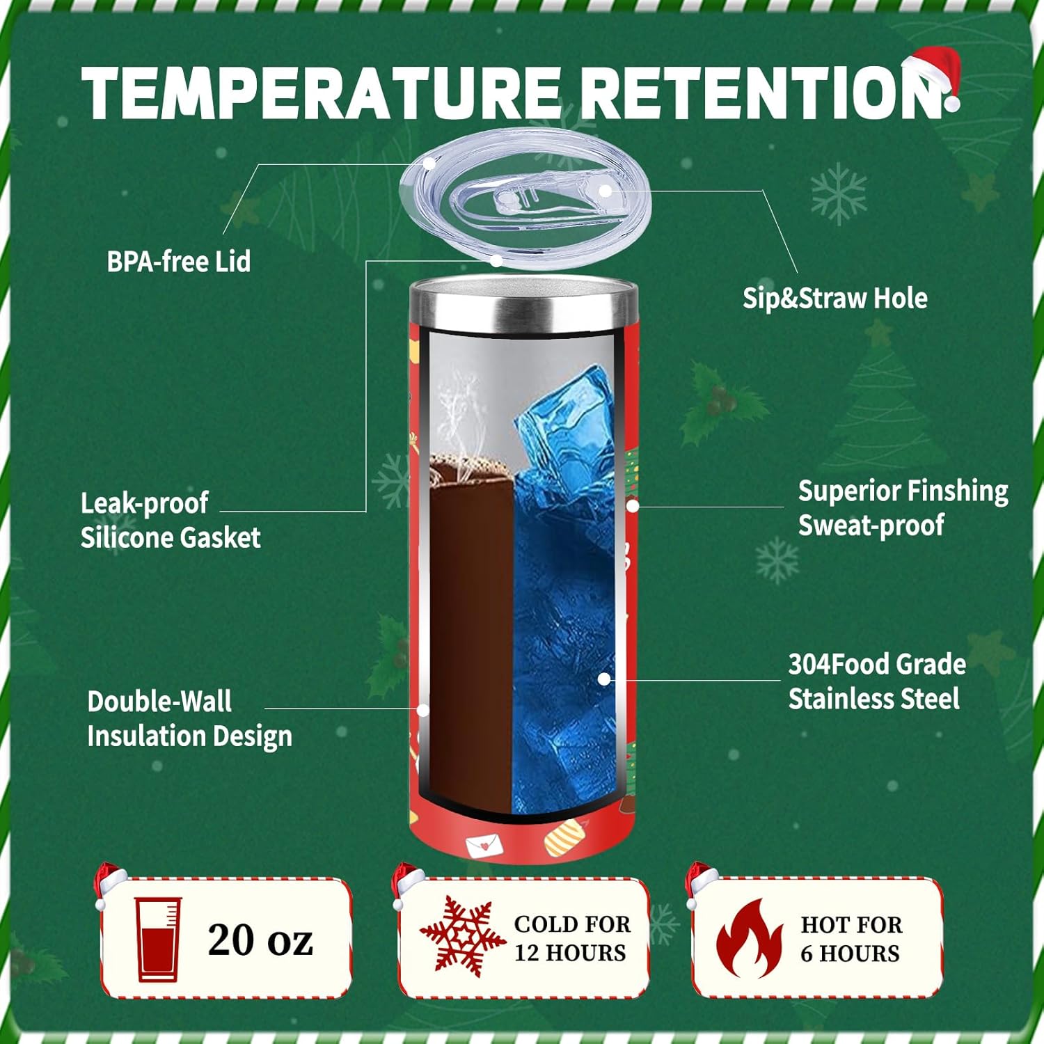 - โจ๐ฆ๐๐ฝ๐ฒ๐ฟ ๐ฃ๐ฟ๐ฒ๐บ๐ถ๐๐บ ๐ ๐ฎ๐๐ฒ๐ฟ๐ถ๐ฎ๐น: Christmas 20 oz Skinny tumblers with lids and straws are made of 18/8 304 stainless steel, rust-proof, durable, easy to use and clean.Stainless steel tumblers adopts the technology of double walled vacuum insulation design keeps beverages hot up to 6 hours and cold up to 12 hours and prevent sweating or condensation.