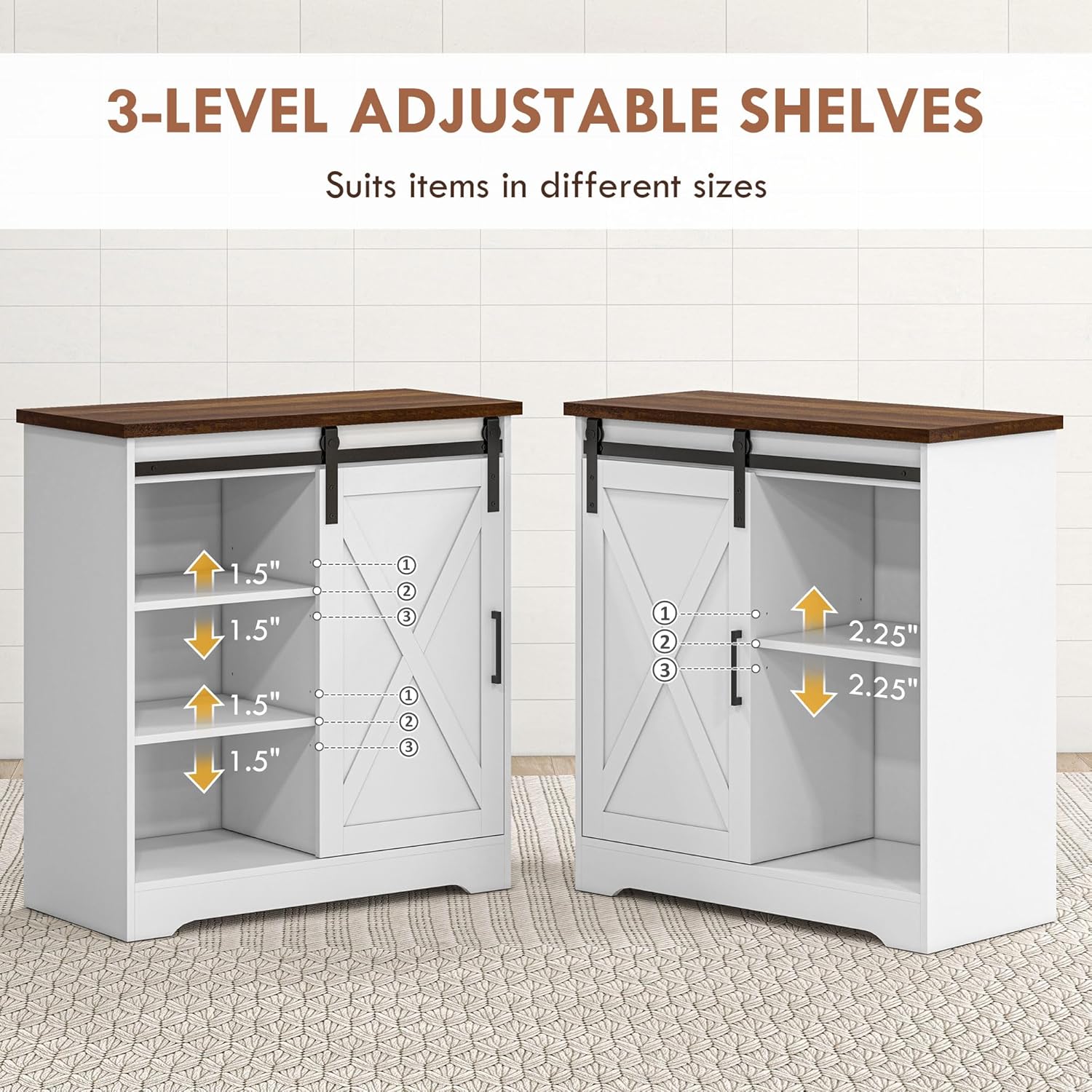 HOMCOM Farmhouse Coffee Bar Cabinet, 33" Buffet Sideboard with Sliding Barn Door and Adjustable Shelf, Kitchen Buffet Cabinet, White