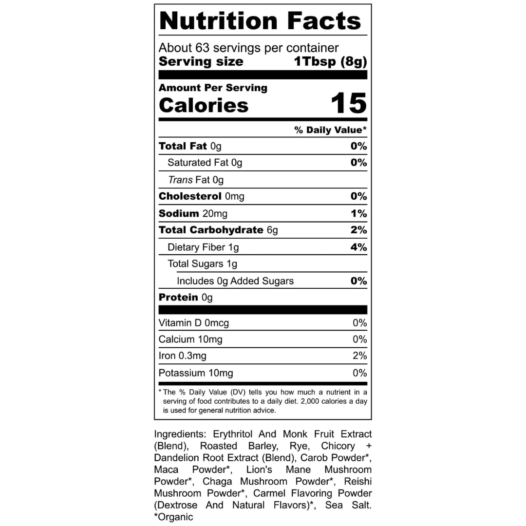 - Caffeine-free mushroom superfood coffee alternative for weight loss with no added sugar. Each serving contains 15 calories. Make a good gut health coffee to support healthy digestion.