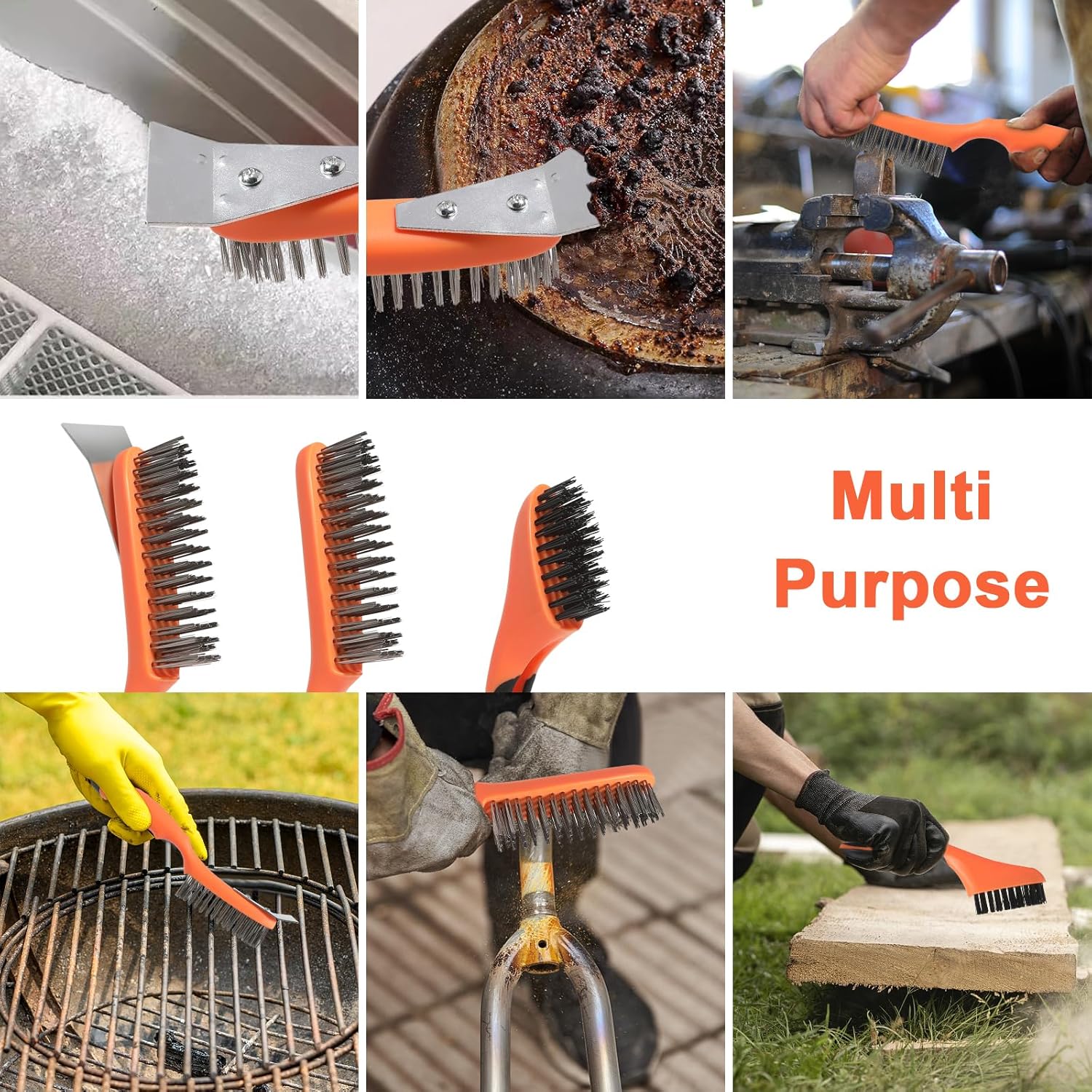 - Stainless steel wire scratch brush with advanced 10.5" long rubber handle for cleaning rust paint remover, welding