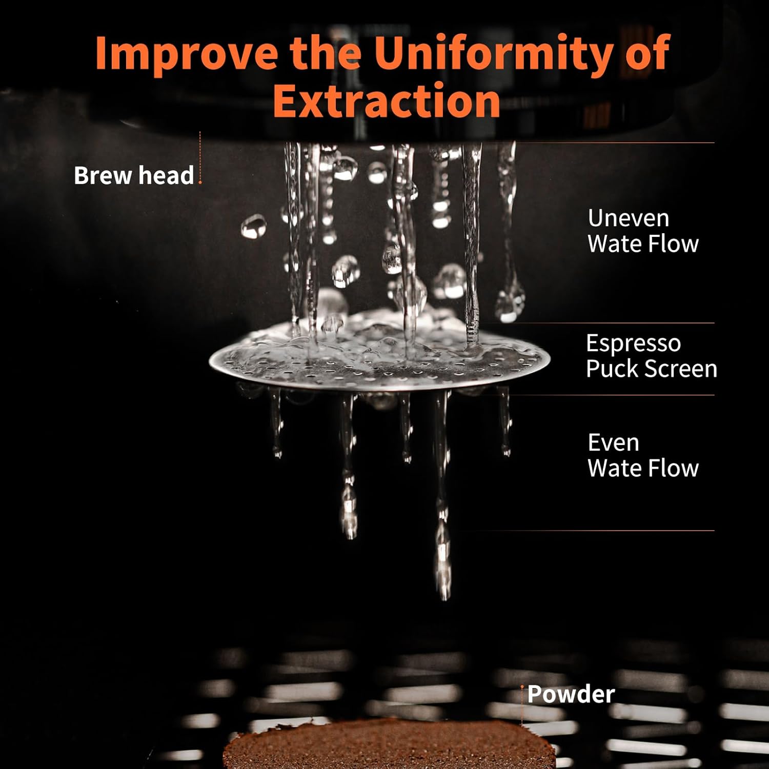 - Keep the Brew Head Clean: The espresso puck screen effectively separates the coffee powder from the brewing head, allowing it to stay clean. It is easier to clean than most other puck screens on the market, fine powder cannot be hidden, and the usage time may be extended.