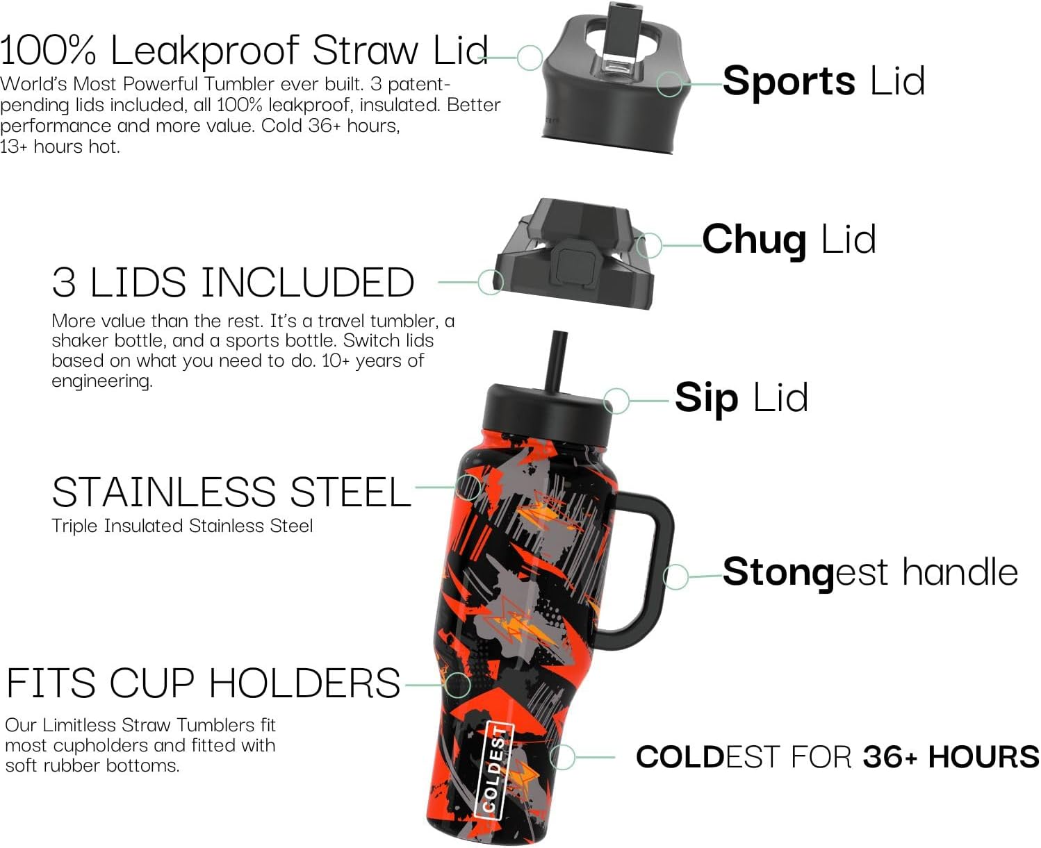 - Ice-Cold for 36+ Hours, Hot for 13+: Triple-insulated wall in Coldest leak proof tumbler locks in temperature, keeping your drinks ice-cold for over 36 hours or steaming hot for 13+. Whether it’s water, coffee, or a pre-workout shake, your last sip will be just as refreshing as the first.