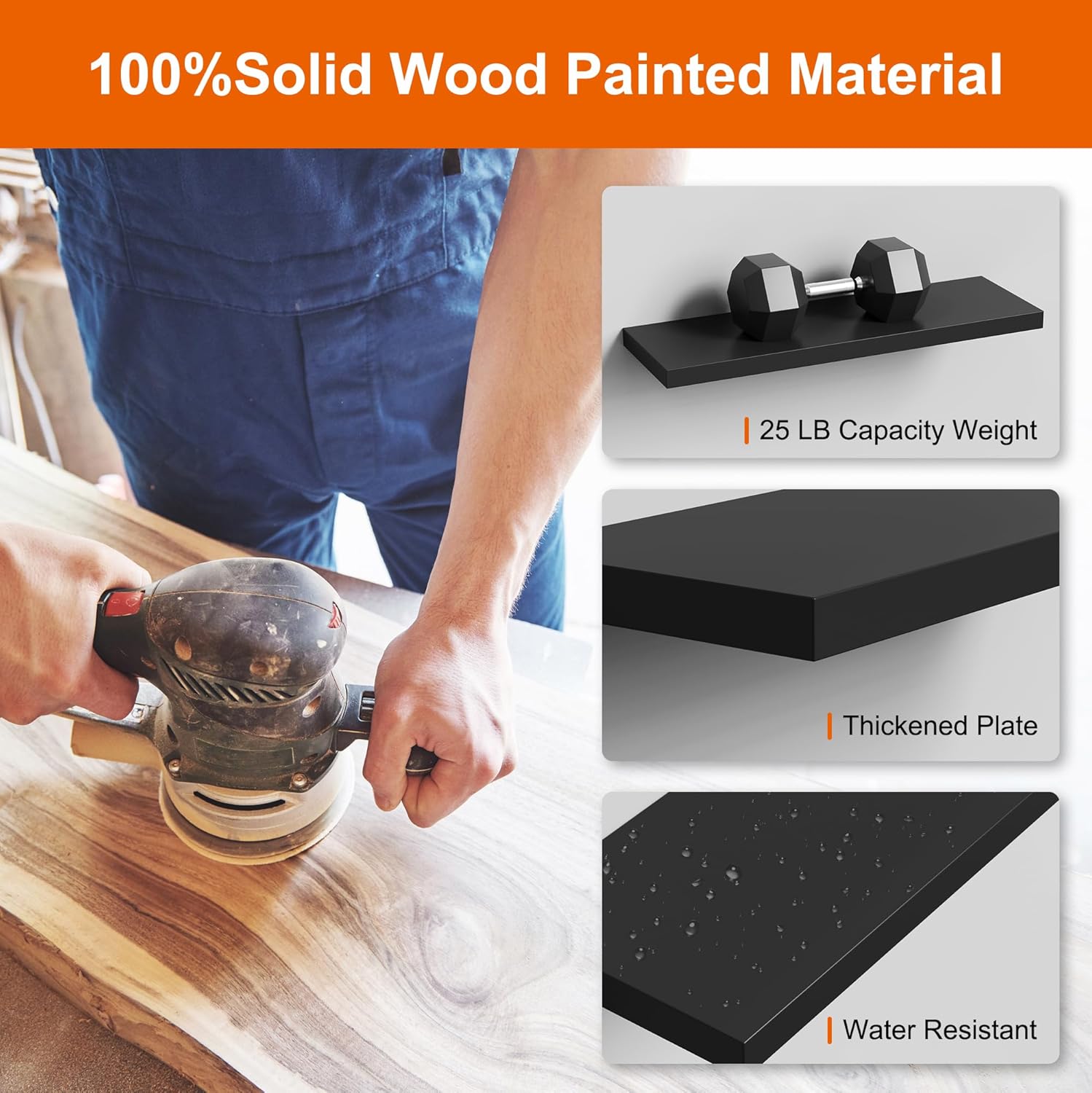 - 【Modern Concise Design】Our black floating shelves are designed with modern simplicity. It has streamlined look to bring modern style and vintage atmosphere to the home. Our wood floating shelves for wall is a set of 3 wall mounted shelves. Our rustic wood shelves can give us plenty of space for creativity, we can choose a line, a ladder shape, or a symmetric way. Let our floating shelf wood more suitable to the home decor and bring a better visual experience.