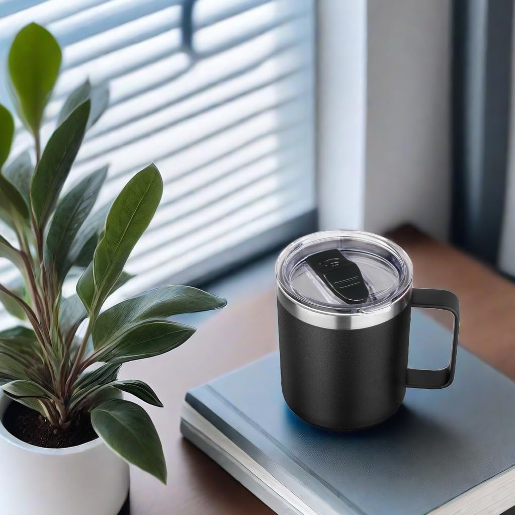 Volhoply 14oz Insulated Stainless Steel Coffee Mug with Lid Bulk 8 Pack,Double Wall Vacuum Travel Coffee Cup with Handle,Reusable Metal Cups Tumbler,Camping Mugs Keep Hot,Ideal Gifts(Black,8)