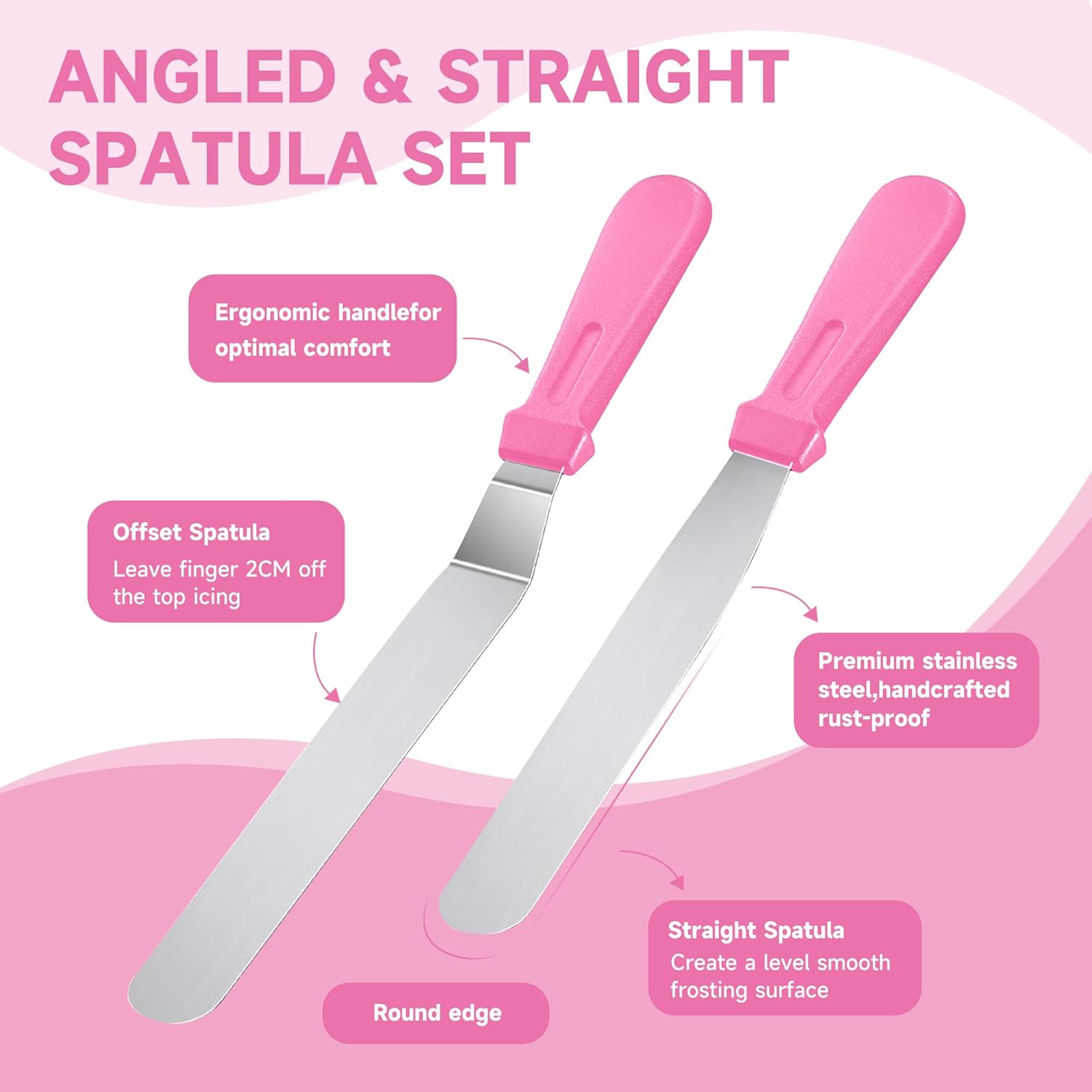 Cake Decorating Kit,137pcs Cake Decorating Supplies with Cake Turntable for Decorating,Pastry Piping Bag,Russian Piping Tips Baking Tools, Cake Baking Supplies for Beginners(Pink)