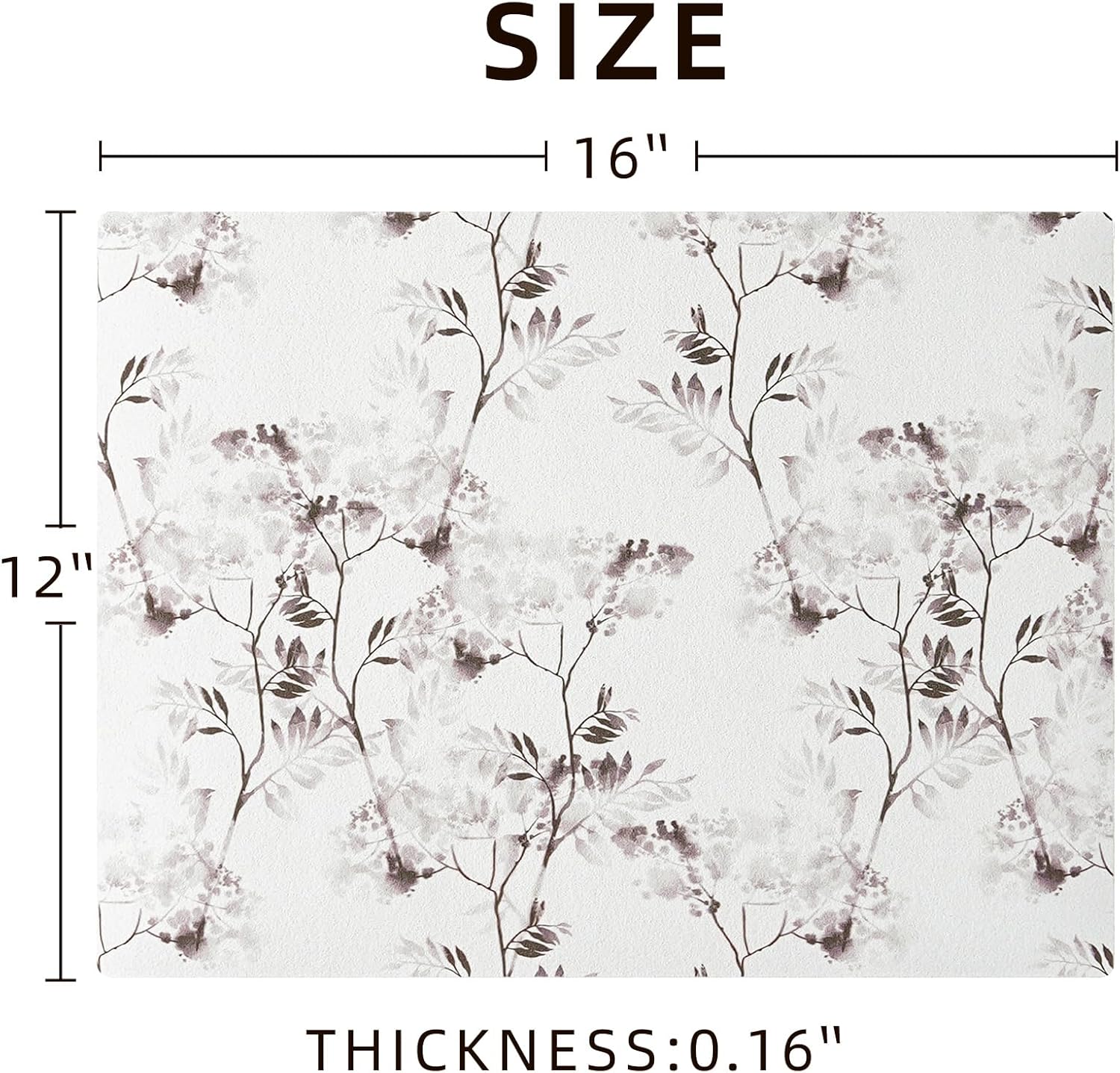 Dish Drying Mat, Diatomaceous Earth Soft Coffee Mat, Absorbent Silicone Dish Drying Mat for Kitchen Counter or Sink for Kitchen Bathroom Coffee Bar (Inked Flower, 12 x 16 Inches)