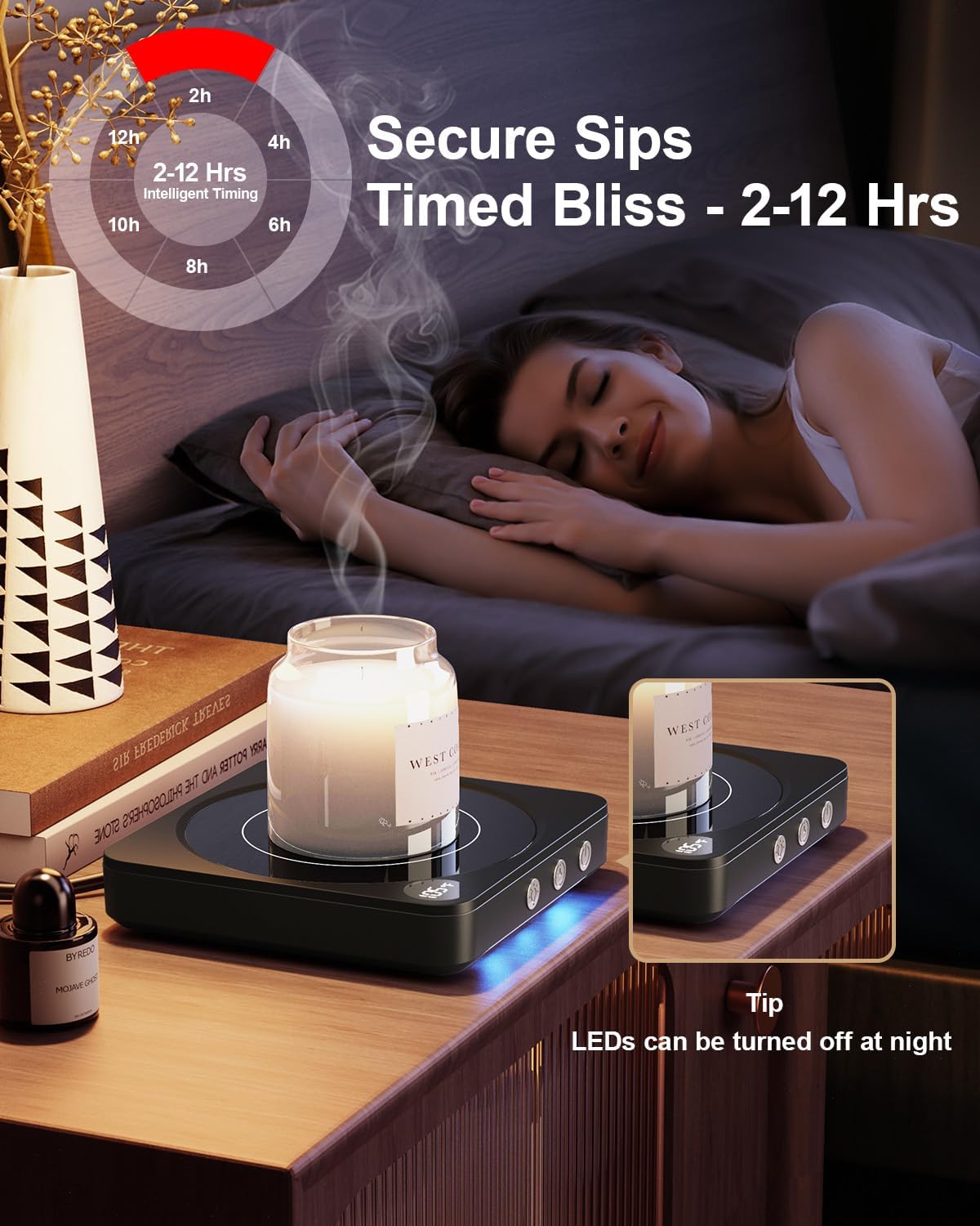 - 2-12H Timed Auto Shut Off: Enjoy convenience and safety with our auto shutdown timer. The coffee warmer automatically turns off after 4 hours by default, and you can customize the shutdown time from 2 to 12 hours
