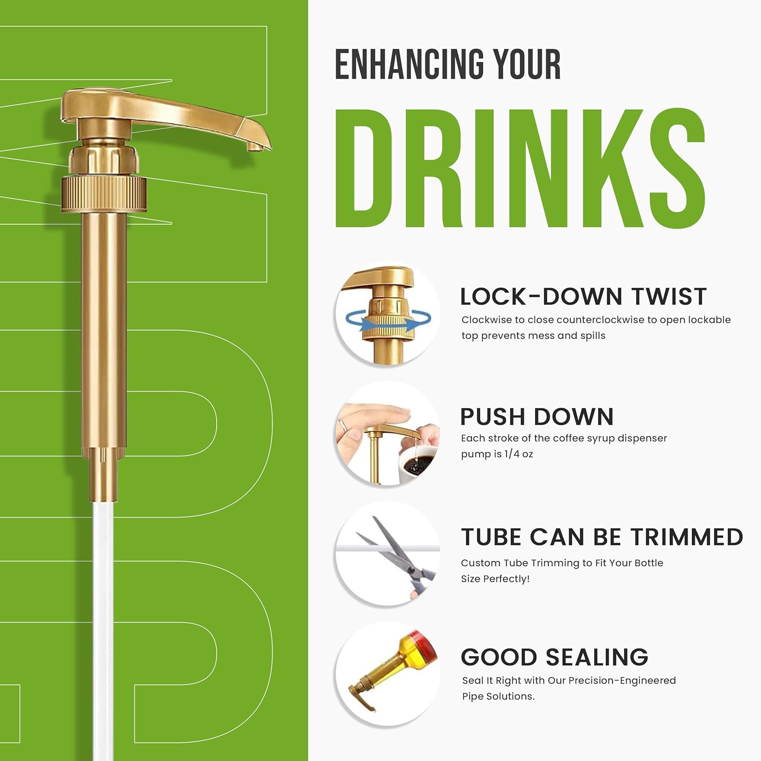 Jimoco® Syrup Pump Dispenser + Torani® Peppermint Syrup, 25.4 oz - Coffee Syrup Pump & Flavoring Bundle