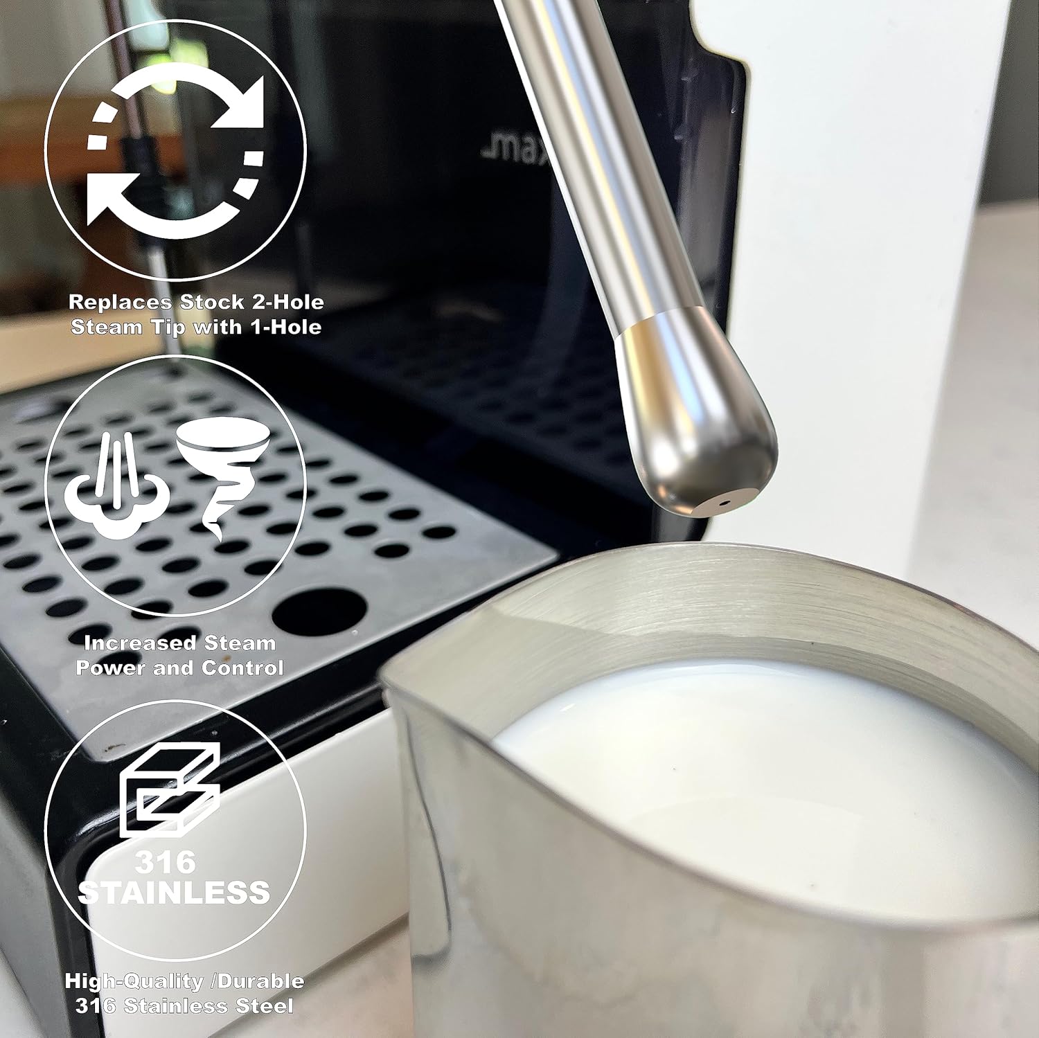 - Steam Tip modification allows better directional control and power of steam leading to silky smooth milk everytime