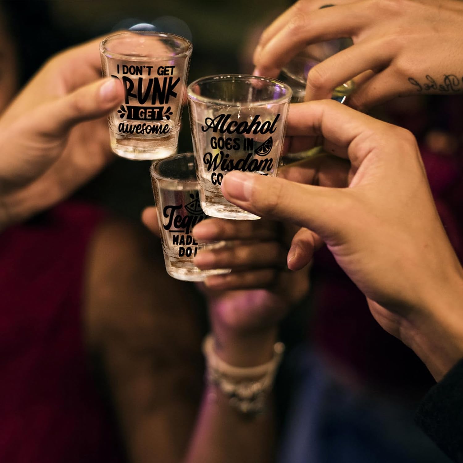 - Wide Application:This friends shot glass is a hilarious gift for any friends; our funny shot glass will work in any gift set or gift basket; the fun friends gifts are awesome gifts for men or women;they are also ideal to serve your birthday parties, bachelorette parties, weddings, outdoor BBQ, bars, themed parties and other festivals for your neighbors, students, teachers, sisters, colleagues or every friend you love and love you