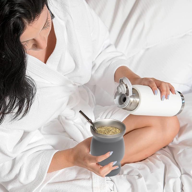 - MANY USES: This yerba mate cup is made from premium 304 stainless steel and holds up to 8 ounces of mate, suitable for hot water, juice, cocktails, beveragbombilles, and can be used repeatedly for a long time