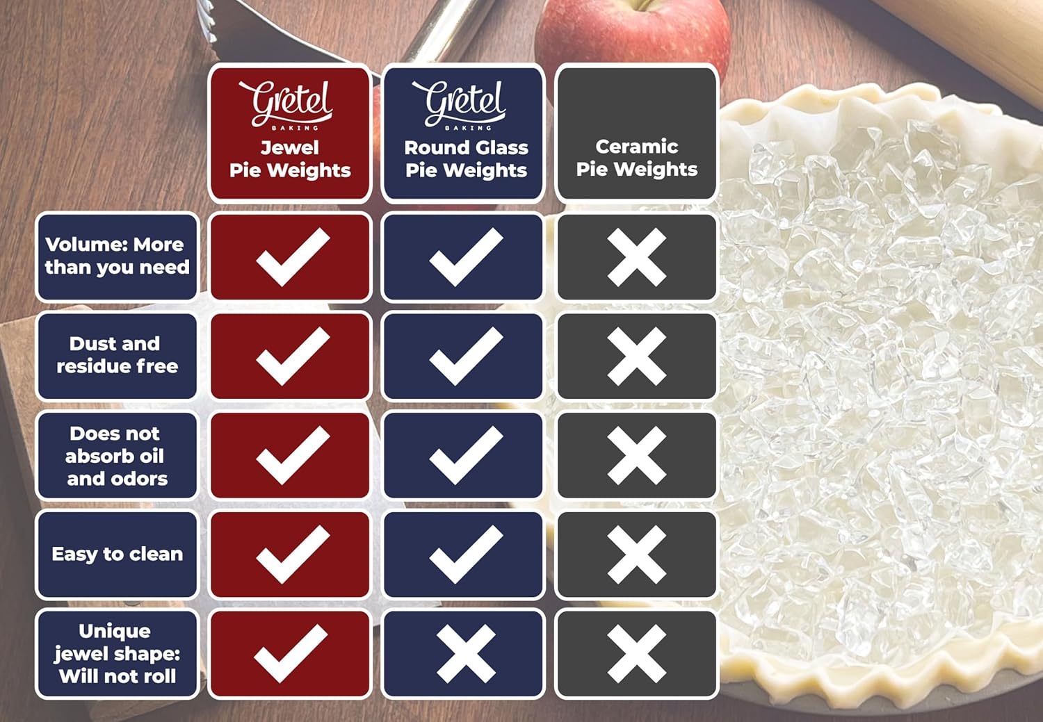 - Safer and more convenient - Unlike round ceramic beads, baking beans, or baking marbles, our Jewel-shaped glass weights will not roll away and are thus much easier and safer to handle in the kitchen.