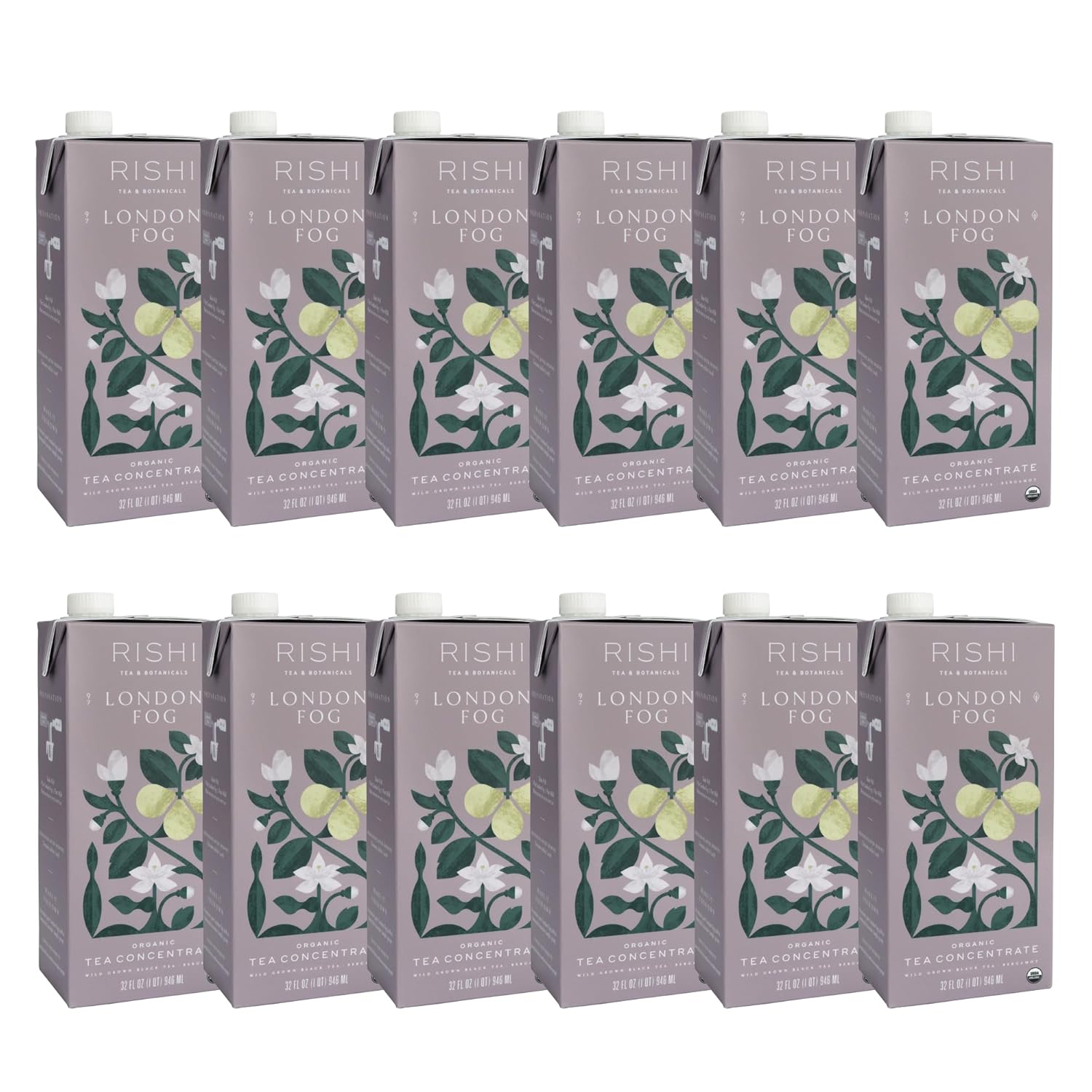 Rishi Tea London Fog Latte - Organic Black Tea Concentrate with Bergamot, Easy-to-Serve Hot or Iced Earl Grey Mix - 32 fl oz Carton, 8 Servings (Pack of 12)