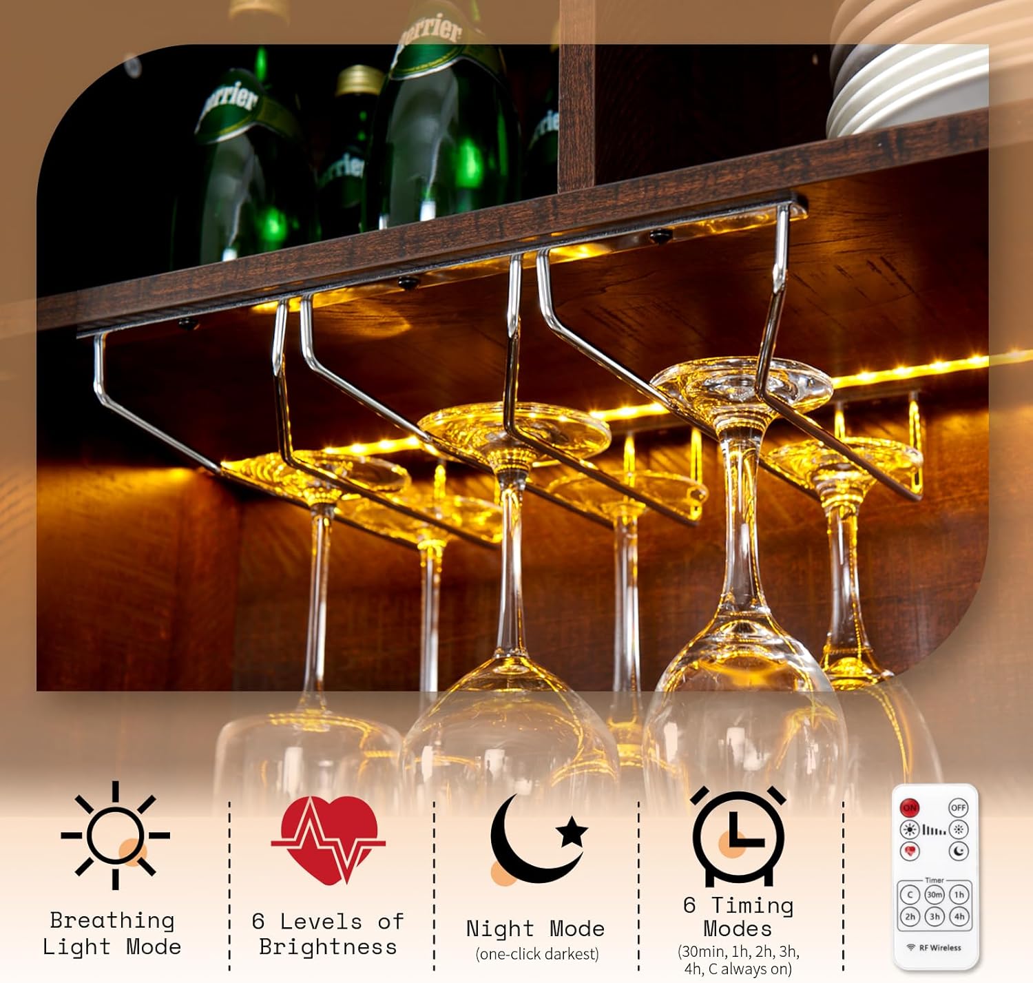 - Coffee Bar: The farmhous bar with smooth sliding barn door combines retro and classic. Enhance your home with 3 wine glass holders, allowing for the elegant display of up to 6 red wine glasses. Each cabinet features adjustable shelves, providing a customizable and versatile storage solution tailored to your needs.