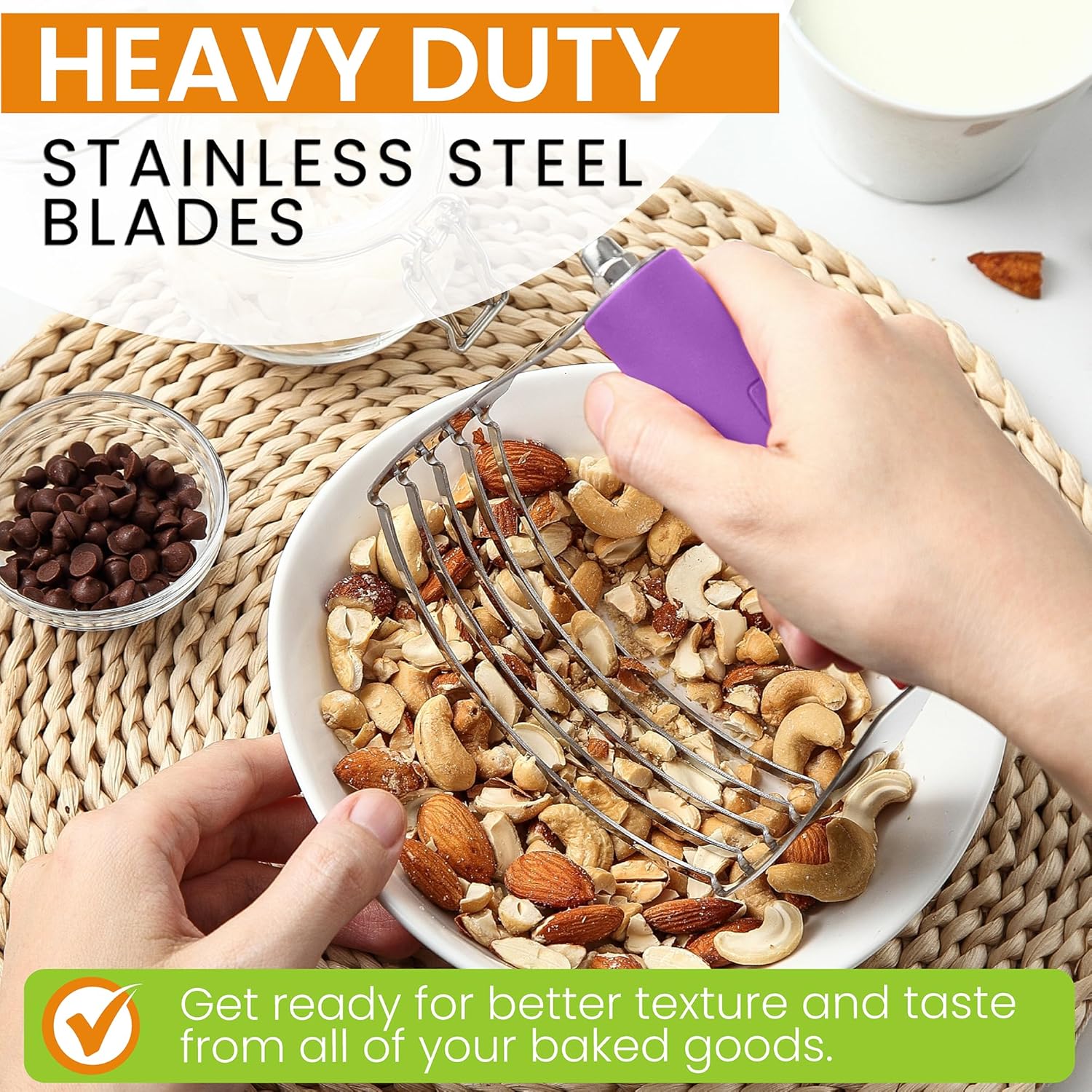 Spring Chef Large Dough Blender For Baking, Stainless Steel Puff Pastry Cutter Tool with Soft Grip Handle, Dishwasher Safe Dough Cutter Tool, Manual Pastry Blender for Easy Mixing - Orchid