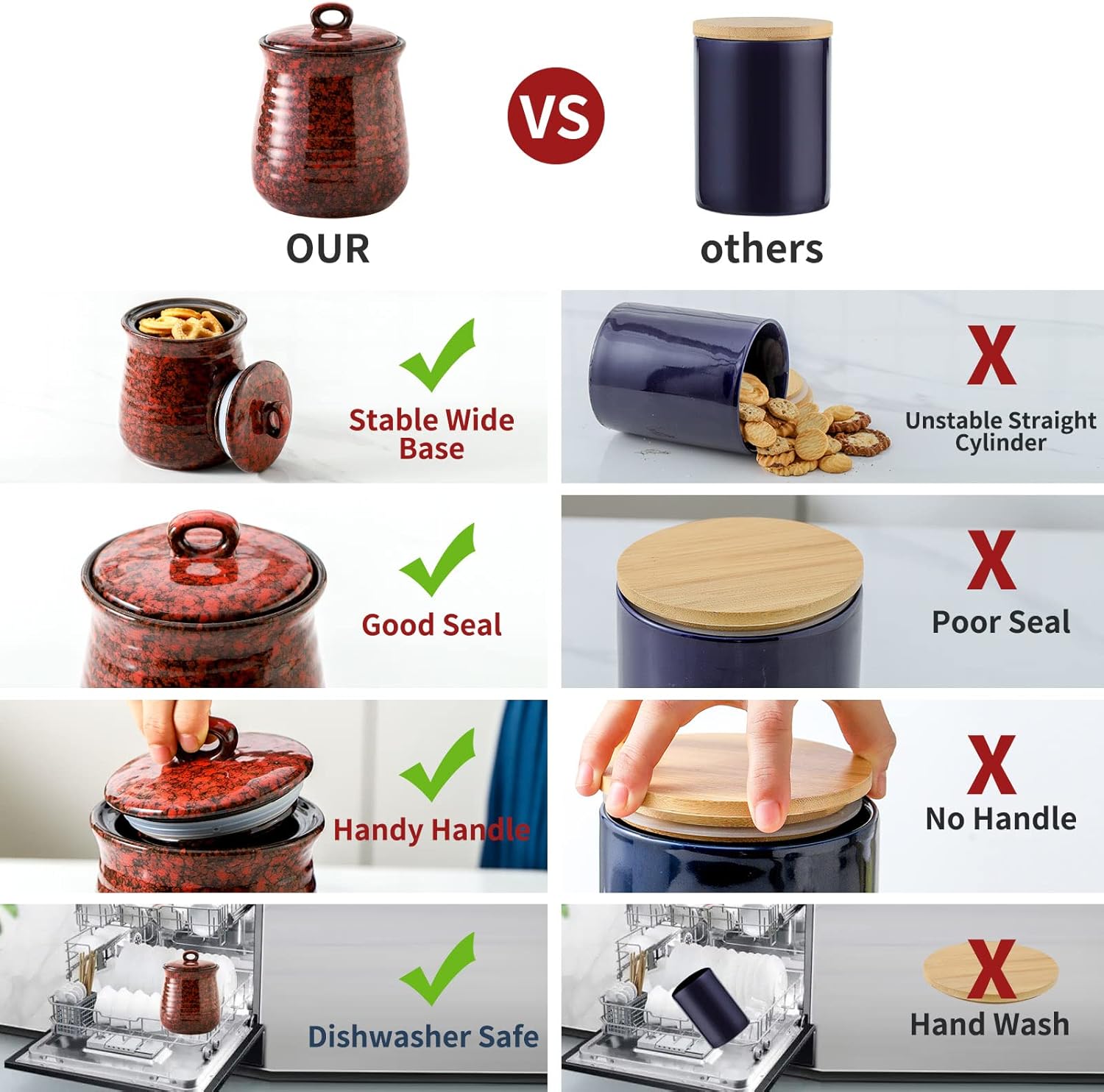 - Safe and Harmless Lead-Free Ceramic Material: Tikooere food storage jars are made of safe and harmless lead-free ceramic material, which not only makes it more environmentally friendly, but also is more durable and less likely to break than plastic and glass, thereby ensuring that the stored food Always in a safe state.