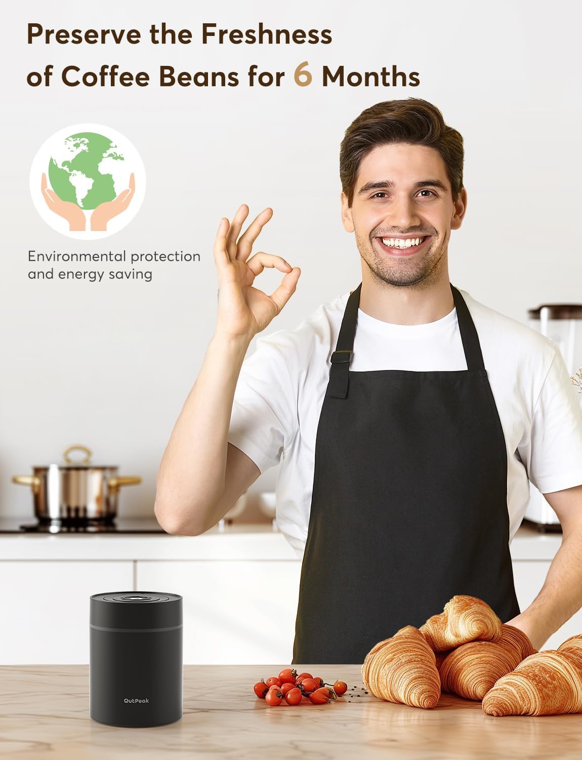 - Stay Sealed & Auto Vacuum: The OutPeak coffee container, with an automatic air sensor chip, maintains an auto-vacuum condition during sealing for energy efficiency. Operating for 3-6 months on a single charge, it cuts electricity costs while preserving the original oil and flavor of your coffee beans