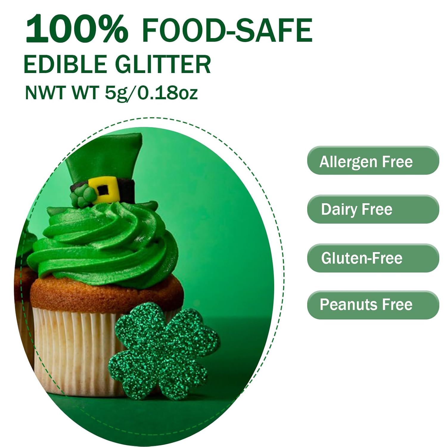 Green Edible Glitter Glimmer Powder for Cakes Drinks - Colaele 5 grams Food Grade Luster Dust Metallic Food Decorating Sprinkle Disco Brew Dust for Cake Decorations Wine Beverage Candy Dessert, Vegan