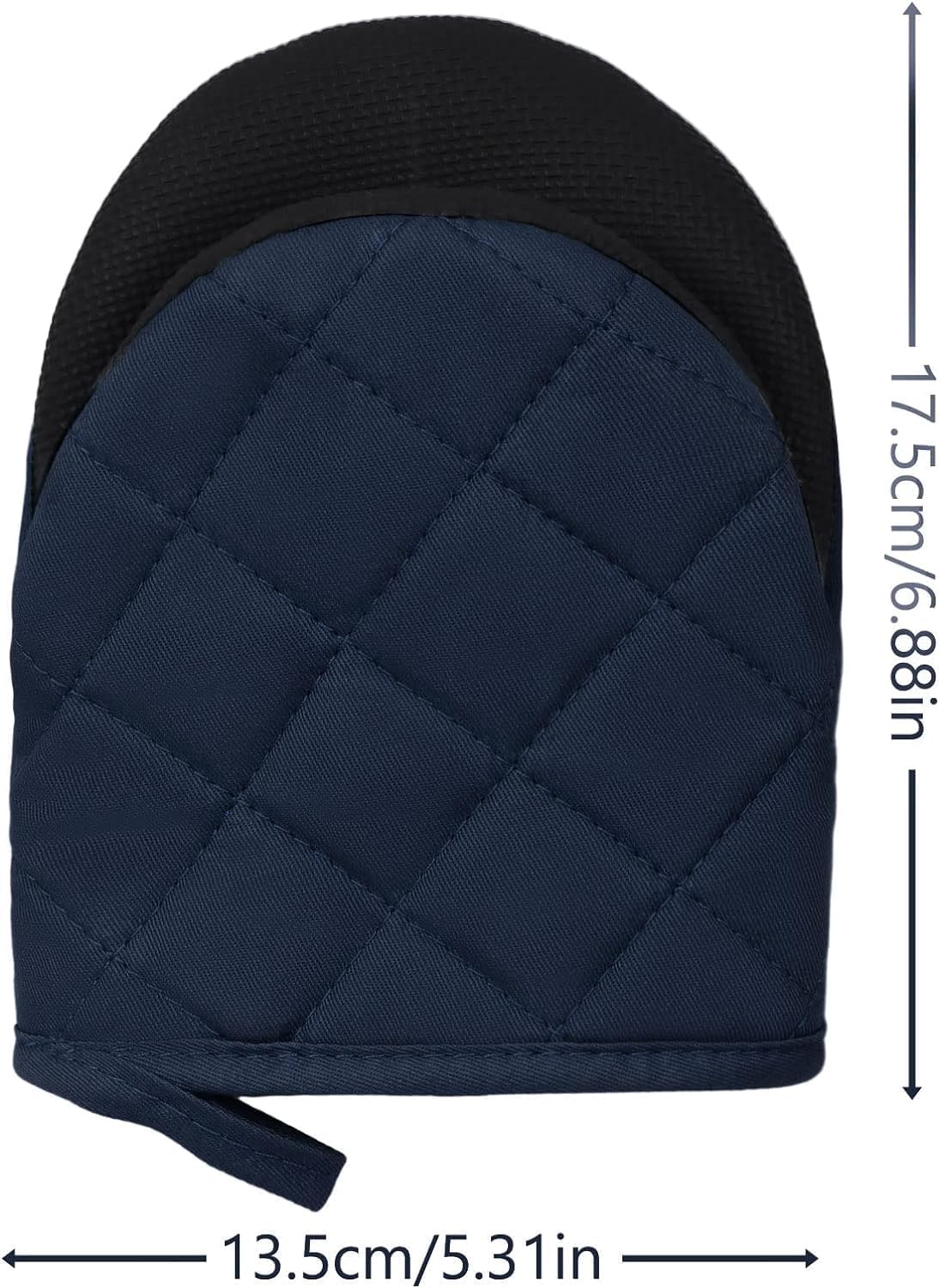Short Oven Mitts, Heat Resistant Silicone Kitchen Mini Oven Mitts for 500 Degrees, Non-Slip Grip Surfaces and Hanging Loop Gloves, Baking Grilling Barbecue Microwave Machine Washable, 1 Piece