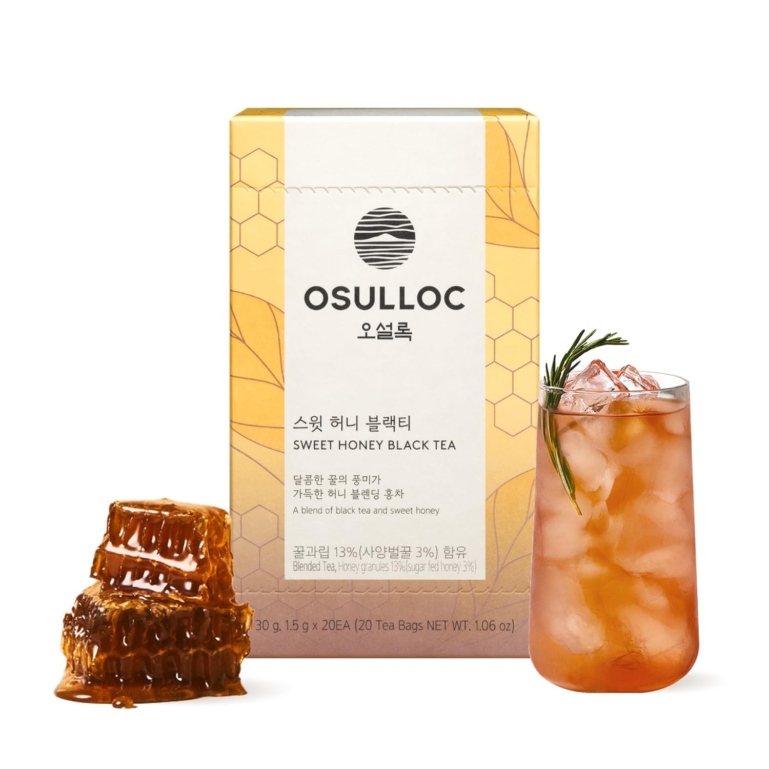 OSULLOC Sweet Honey Black Tea (20 count, 1.06 oz) Black tea filled with Sweet Flavor of Honey, Premium Blended Tea bags from Jeju Island