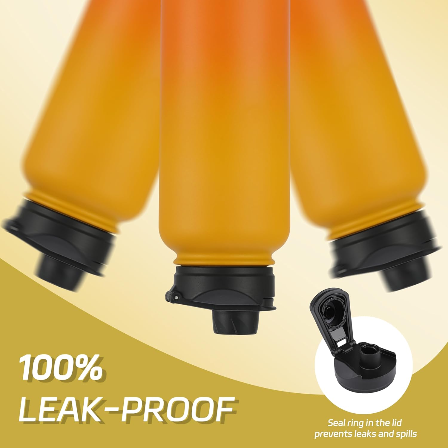 HASLE OUTFITTERS 40oz Stainless Steel Water Bottle, Vacuum Insulated Double Walled Leak Proof Sports Water Bottle with 2 Lids (Straw and Spout Lid) Keep Cold and Hot(Yellow Orange Gradient,1)