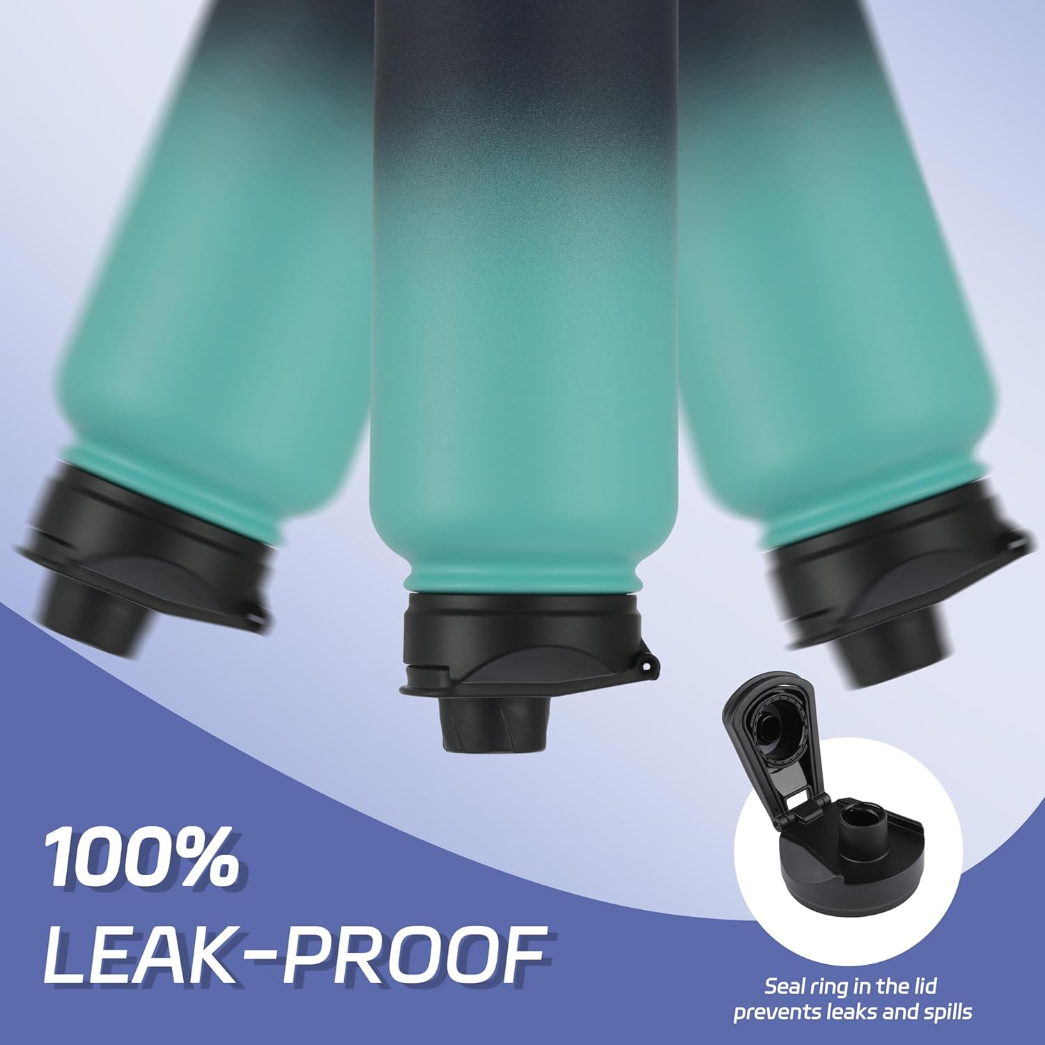 HASLE OUTFITTERS 32 oz Insulated Water Bottle Stainless Steel Double Walled Vacuum Sports Water Bottle with 2 Lids (Straw and Spout Lid) for Gym Camping Hiking(Green Blue Gradient,1)