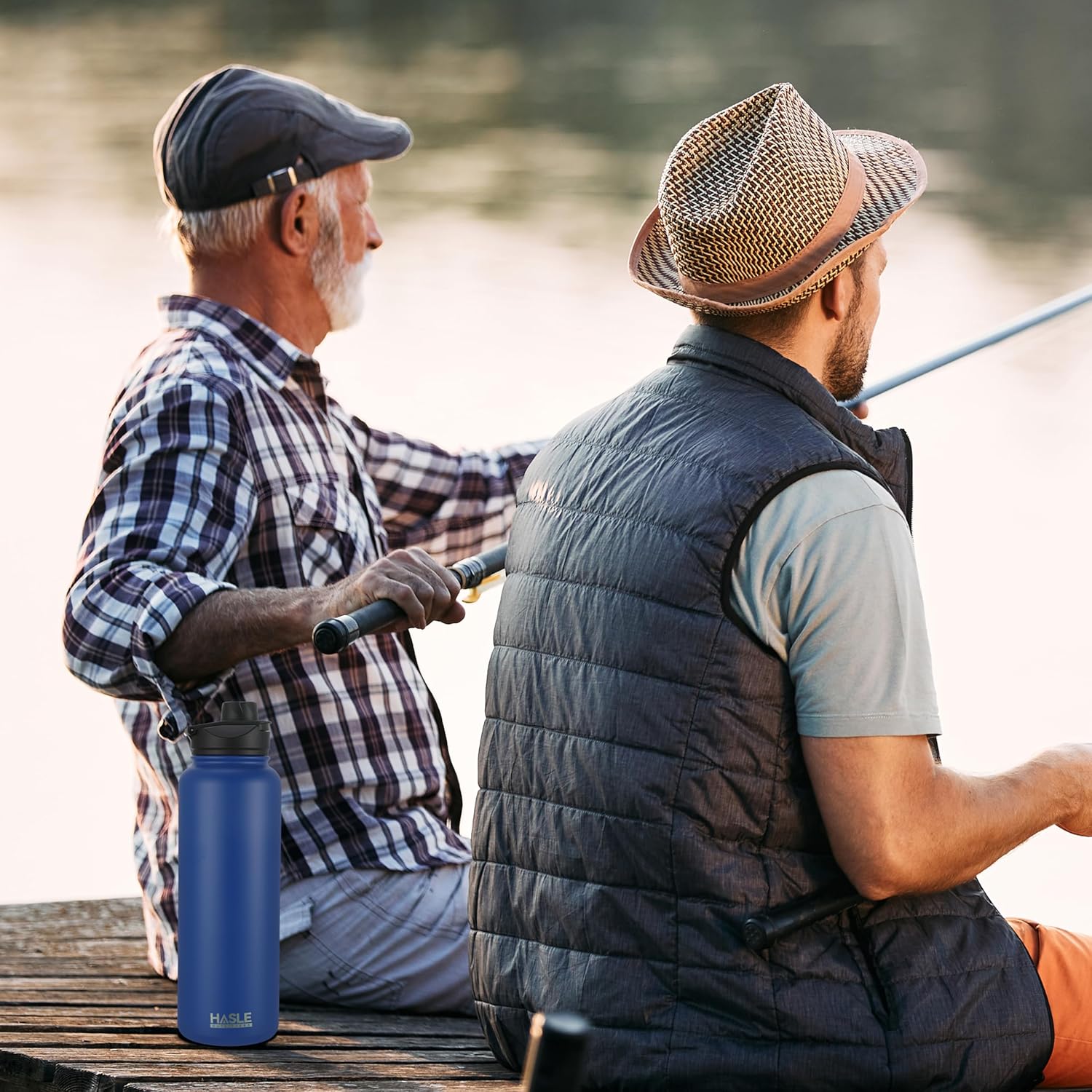 HASLE OUTFITTERS 40oz Stainless Steel Water Bottle, Vacuum Insulated Double Walled Leak Proof Sports Water Bottle with 2 Lids (Straw and Spout Lid) Keep Cold and Hot(Royal Blue,1)