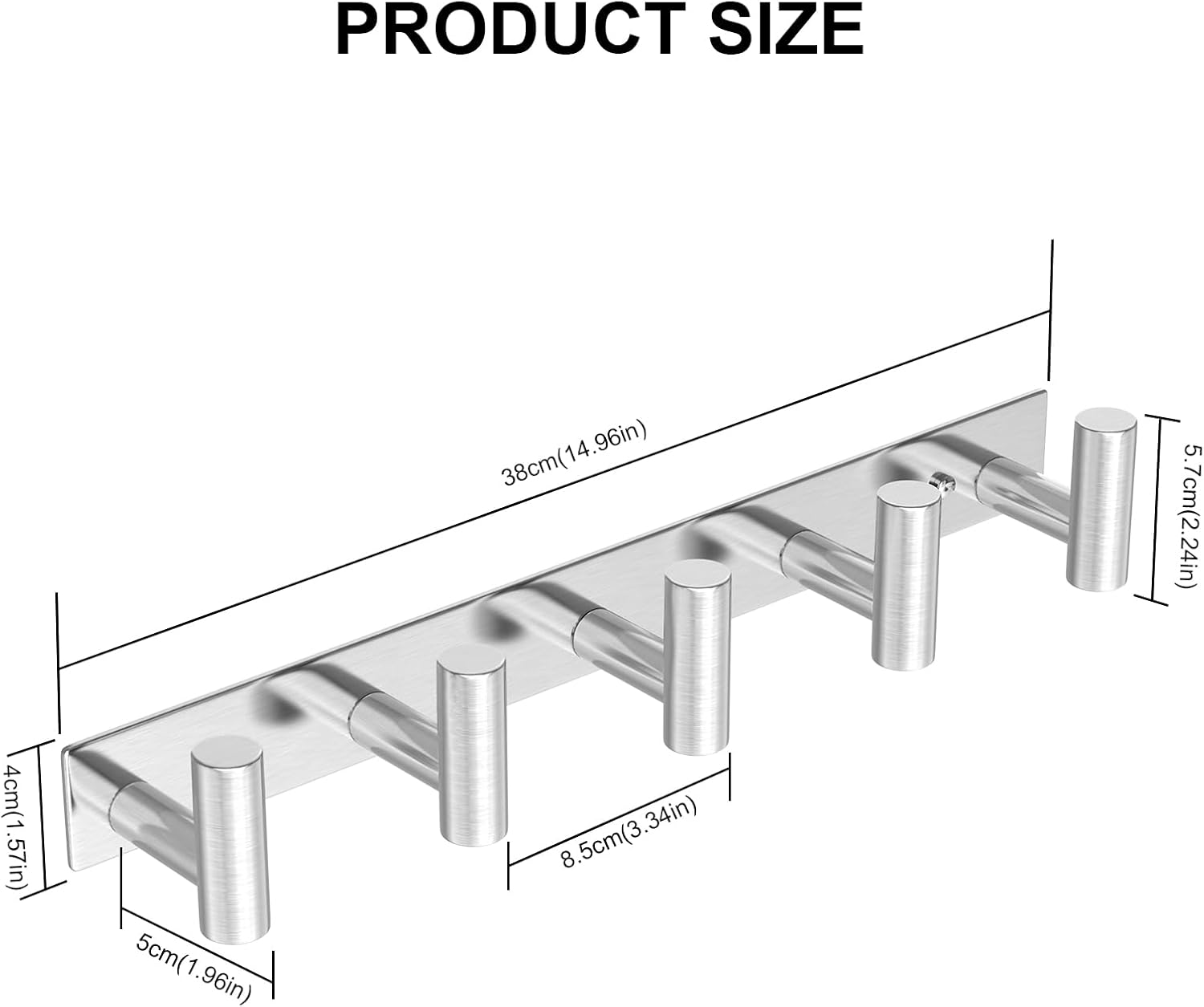 - VERSATILE USE:This Silvery Row Hook Coat Rack with 5 Hooks is good for various locations, including bathrooms, kitchens, living rooms, entrances, and offices. Use it to hang towels, kitchenware, coats, hats, jackets, wallets, keys, and more, adding functionality and organization to your space