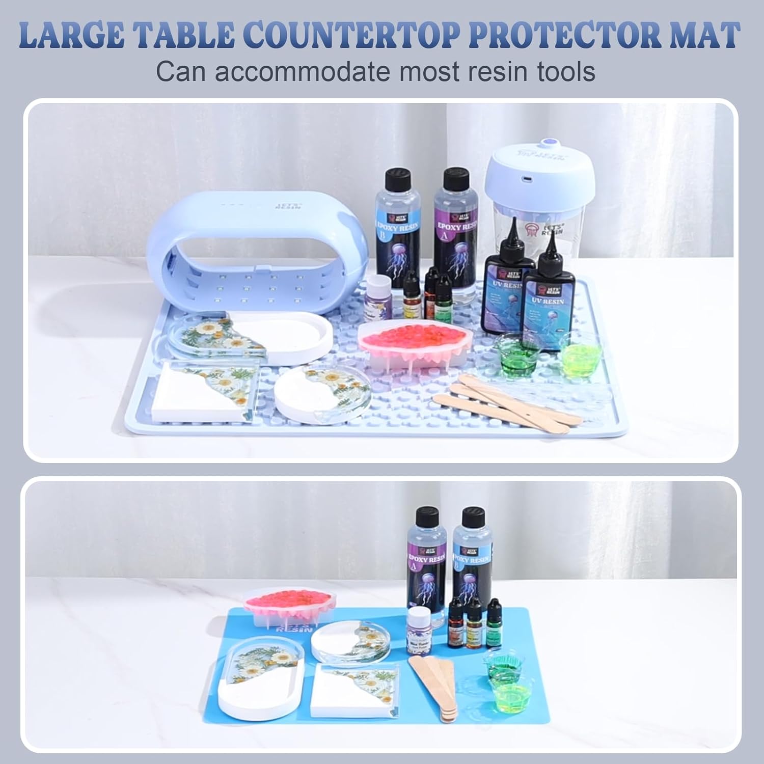 - [Easy to Cleanup]: Our upgraded resin mat continues to adopt a special shape design, forming a drip catch area on this art mat to concentrate the collection of resin. The internal depth is 4mm, and it can collect glue up to 0.43L ≈ 15fl oz. It is easy to peel off the resin after curing.