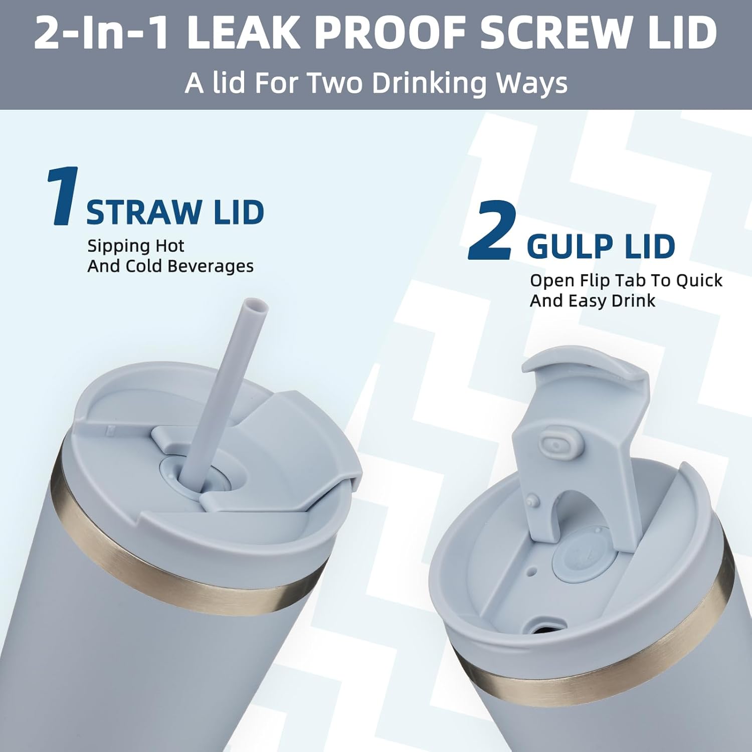 - BPA-Free Threaded Lids: The 2 In 1 Screw-on Lid, Not Only Can You Open The Lid And Drink Directly From The Flip Lid, But Also Can Insert A Straw In The Middle, Choose Your Own Way For Drinking