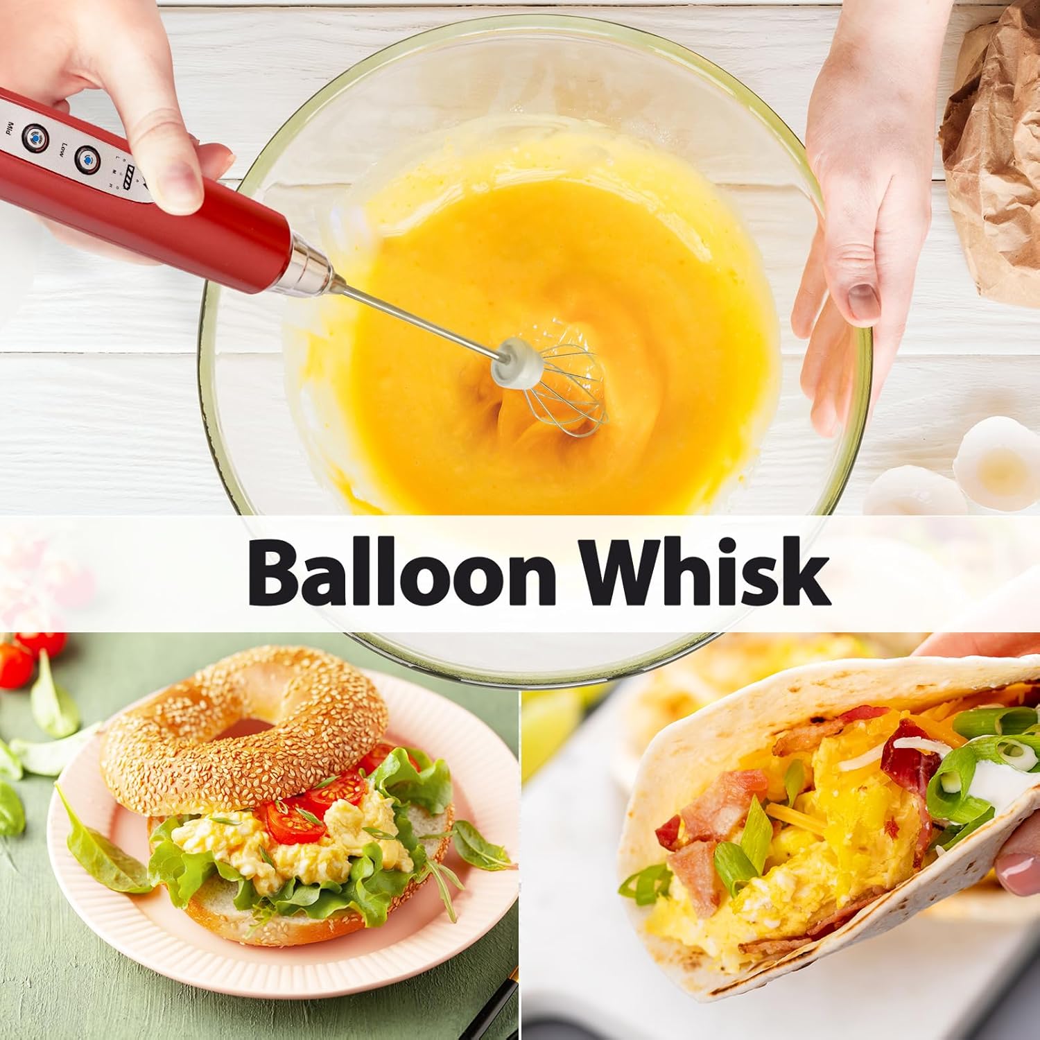 - 3 Whisks and 3 Speed Adjustable Frother : The matcha frother comes with 3 adjustable whisking speeds. SLOW SPEED for stirring egg yolks, powder drinks. MEDIUM SPEED for making jam, matcha tea. HIGH SPEED for milk or coffee froth, fluffy whipped cream, egg whites. Versatile 3 replaceable whisks: SPRING WHISK for creating milk and coffee froth, to make delicious drinks; BALLOON WHISK for mixing egg and whipping cream; HOOK WHISK for blending powders, making jam