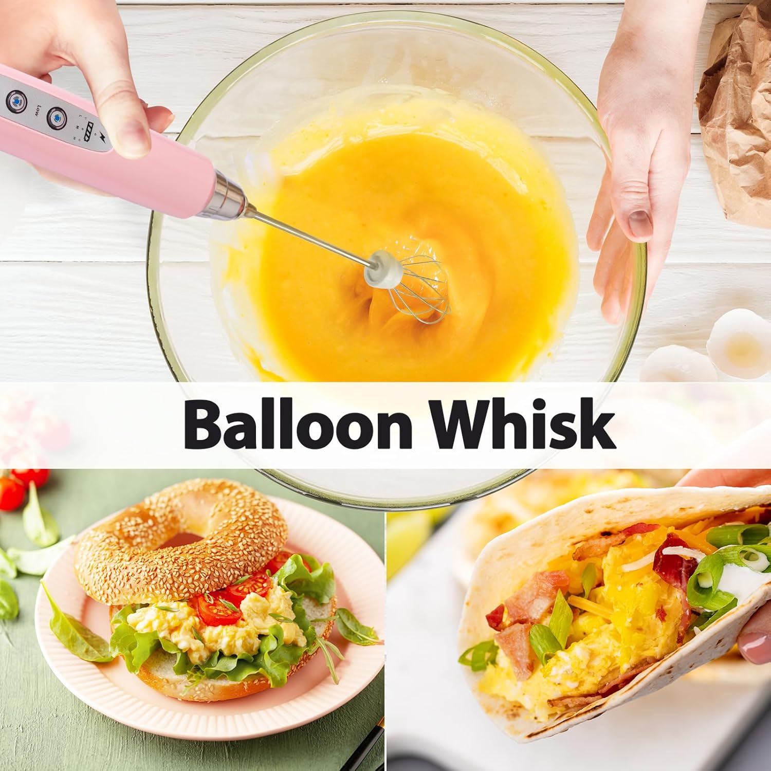 Milk Frother Rechargeable Handheld - Electric Whisk 3 Speed Adjustable, Coffee Frother Wand with 3 Stainless Whisks, Electric Foam Maker, Drink Mixer Blender for Latte Cappuccino Matcha Egg