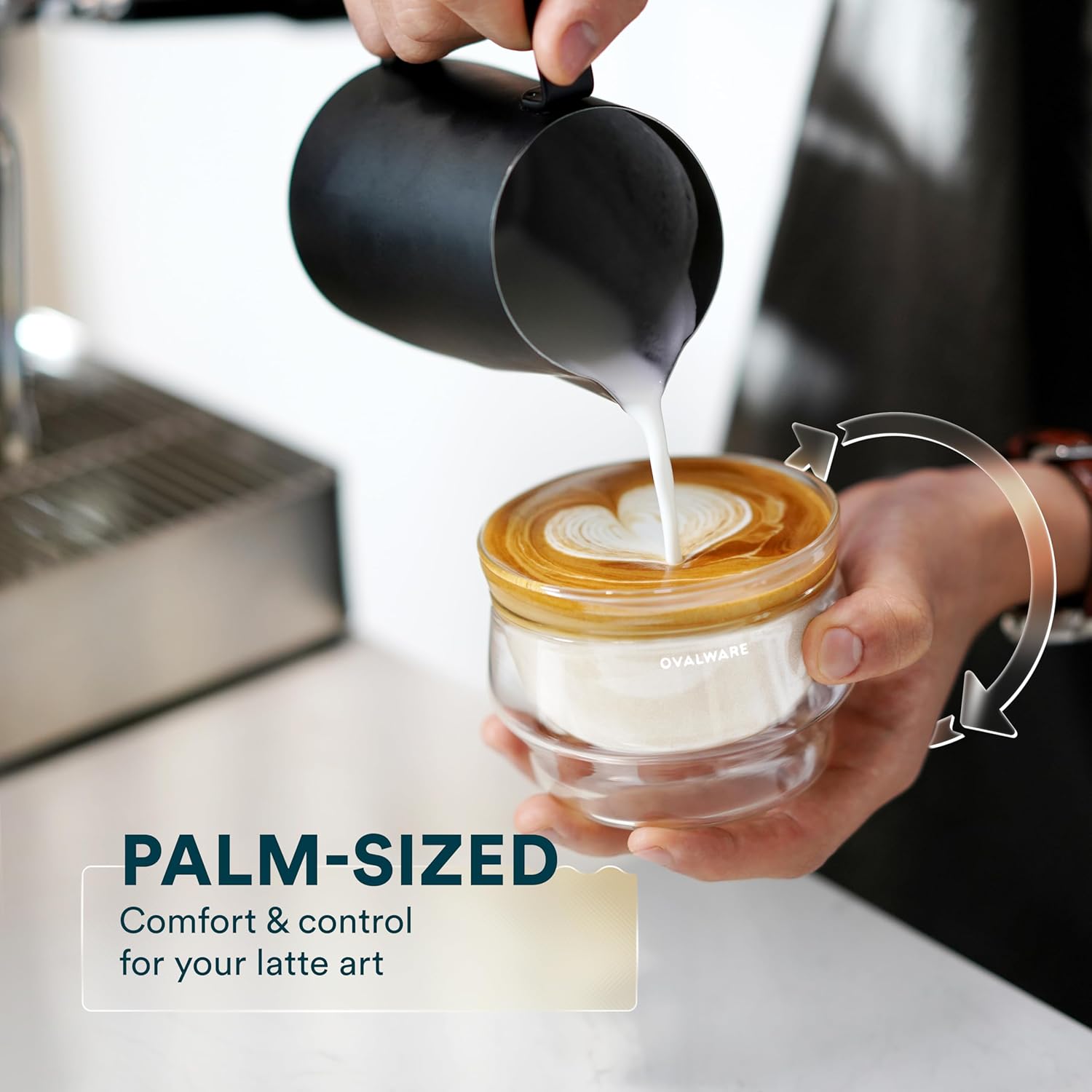 - Artistry in Your Hand - Our double-walled latte art cups fit snugly in your palm, allowing for smooth, controlled swirling. With these premium coffee accessories, you can unleash your creativity and craft stunning latte art designs effortlessly. The insulated, thermal design keeps your drink at the ideal temperature, enhancing both your brewing and drinking experience.