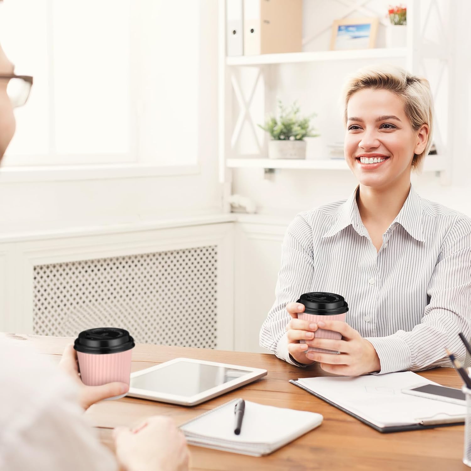 - Comprehensive Cup Set: you will receive 100 corrugated 4 oz espresso cups in pink color and 100 matching black lids; The large quantity allows for extended use catering to your needs for parties, gatherings, and daily life