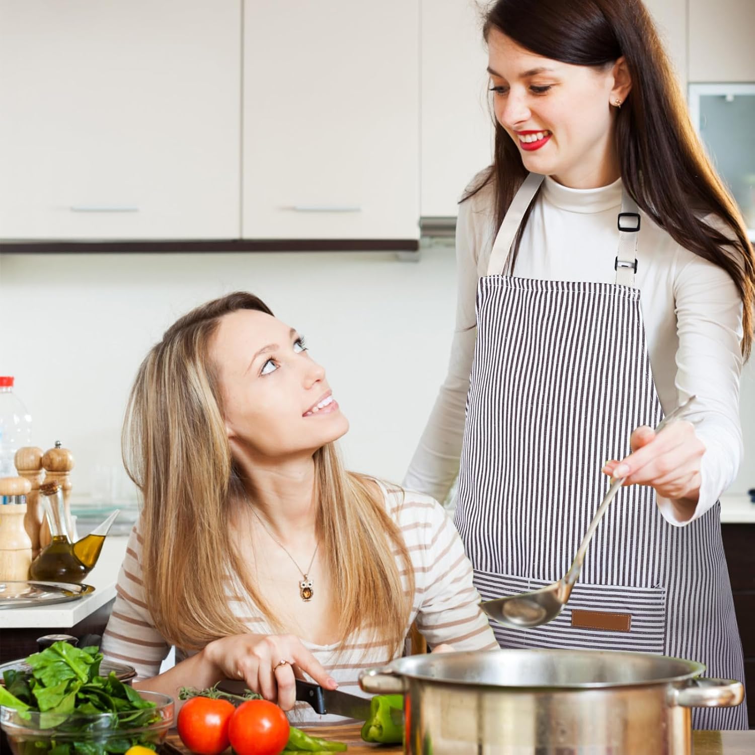 - Apron Gift and Practical Design: with a trendy stripe design and available in black and gray, these aprons are not only stylish but also practical; They come with 2 large pockets that are perfect for holding cooking utensils, baking tools, or any other small items you need; Also a nice dad birthdays gifts, showing your love to your friend and family