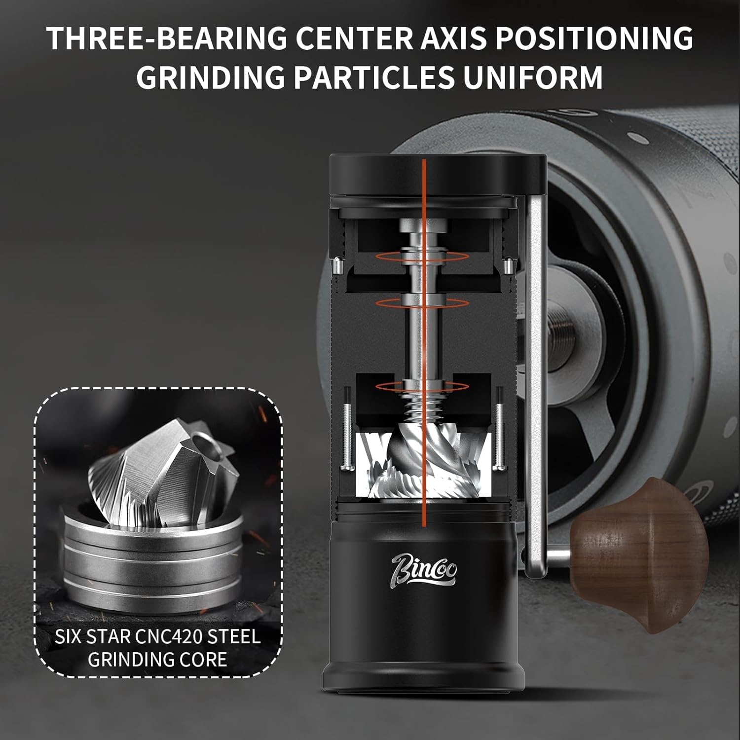 - Premium Six-Star CNC Steel Burr:Equipped with a cutting-edge CNC steel burr, the three-axis bearing ensures a uniformly ground coffee texture, creating a rich and three-dimensional flavor profile.