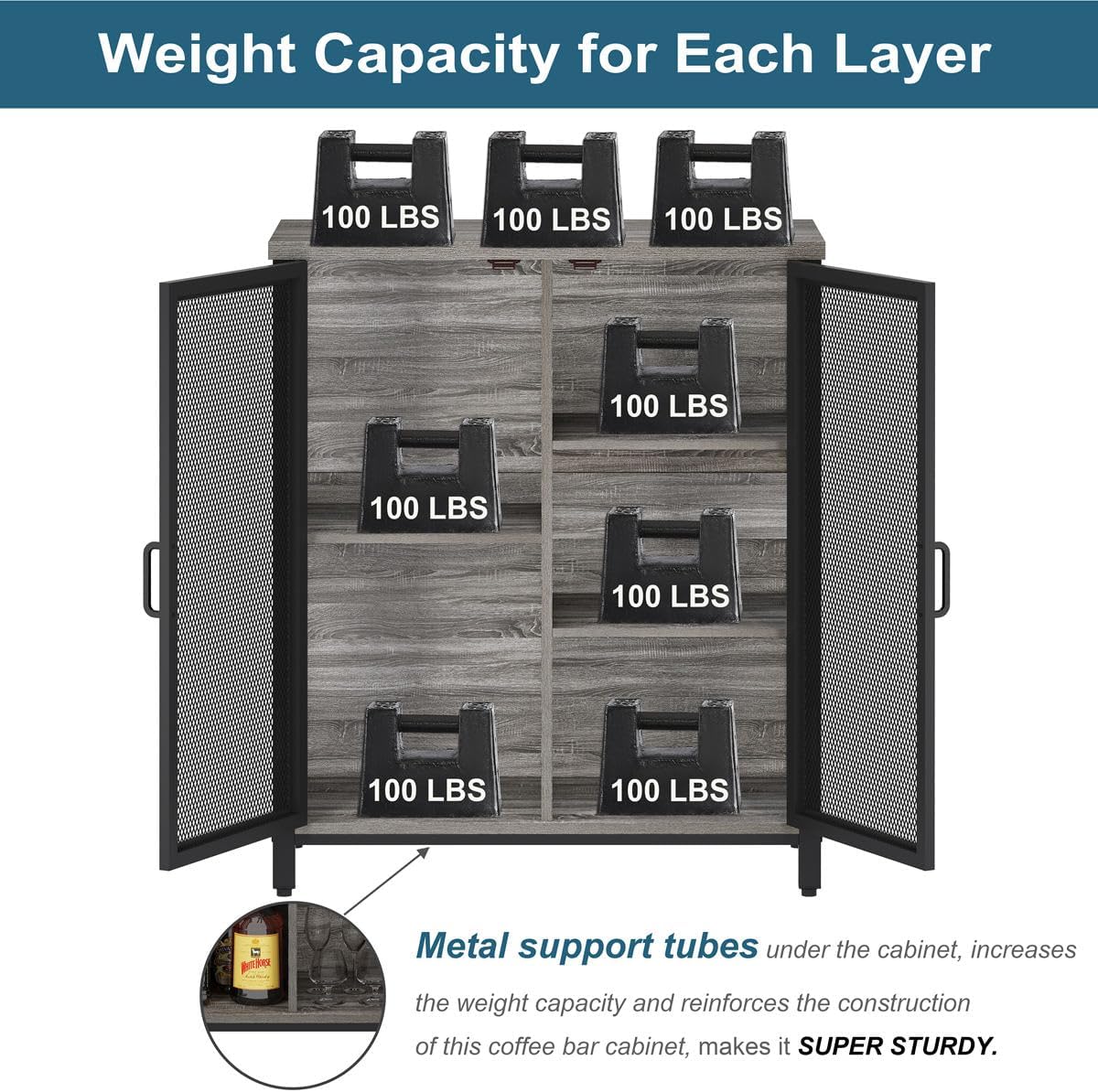 BON AUGURE Small Coffee Bar Cabinet for Liquor, Farmhouse Storage Cabinet with Doors, Wood Sideboard Buffet Cabinets for Home Kitchen, Dining Room, Living Room (Dark Grey Oak)